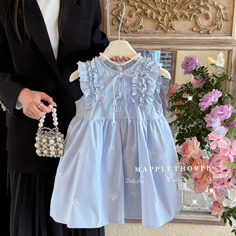 여름 레이디 소녀의 활 레이스 원피스 작은 비행 소매 달콤한 어린이 스커트 소녀의 조끼 공주 원피스스토어 가기