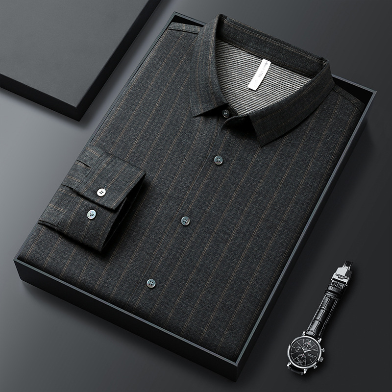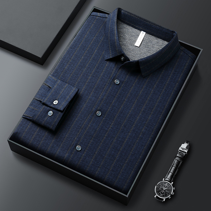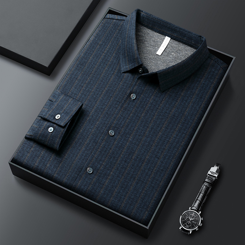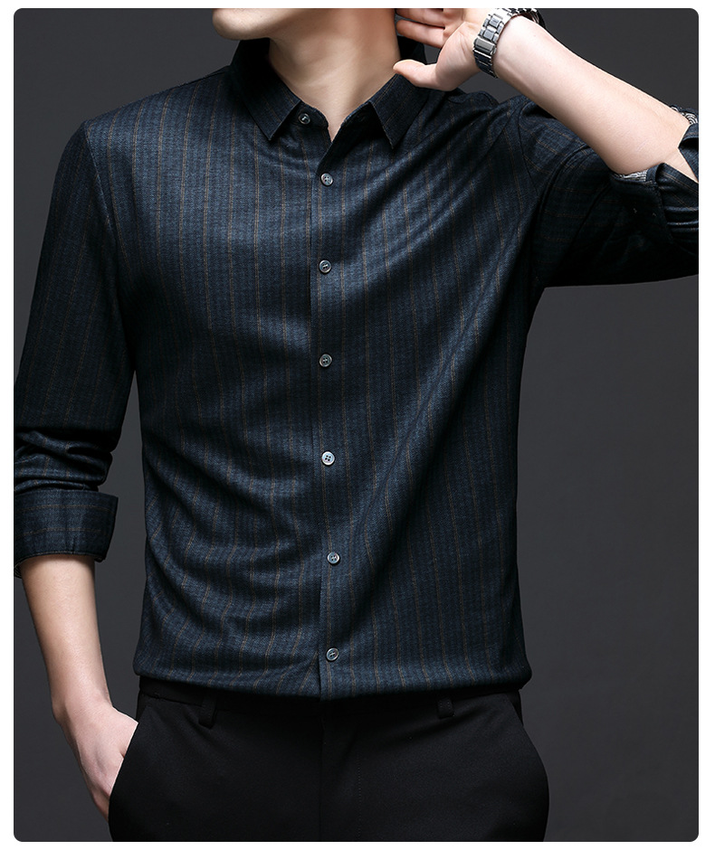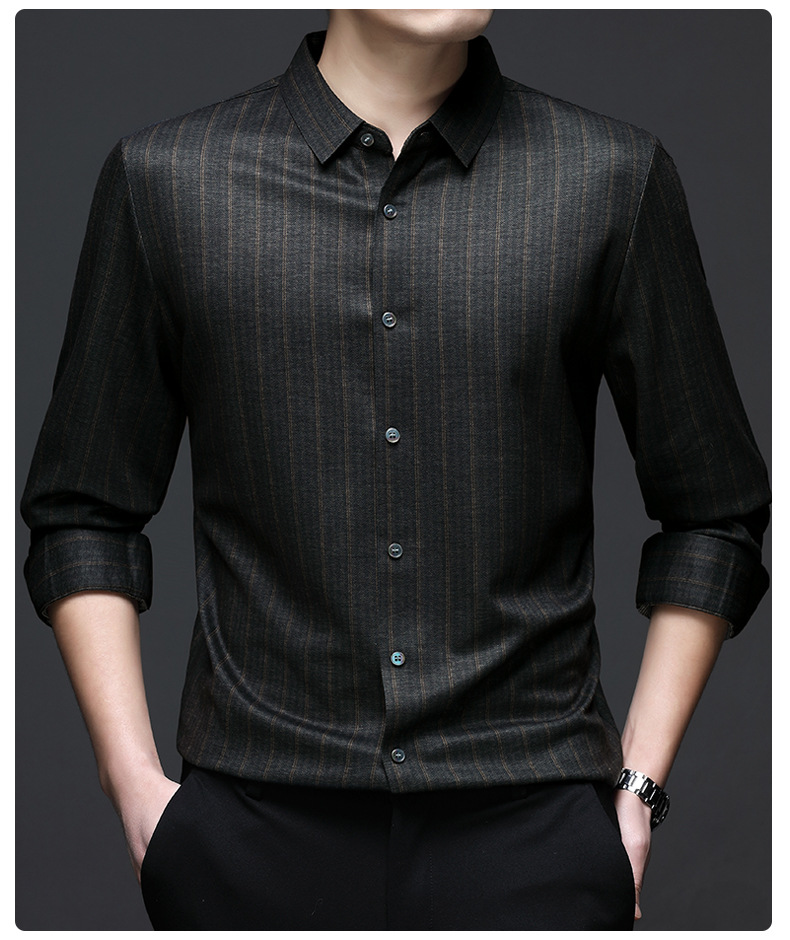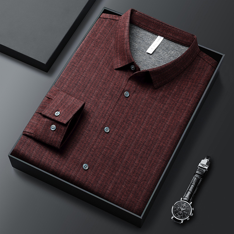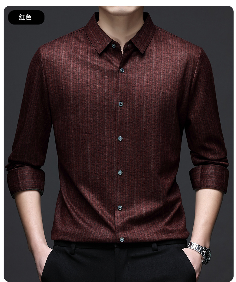 중년 아빠 실크 비즈니스 캐주얼 스트레치 탑을위한 새로운 남성 단면 줄무늬 원활한 셔츠 봄