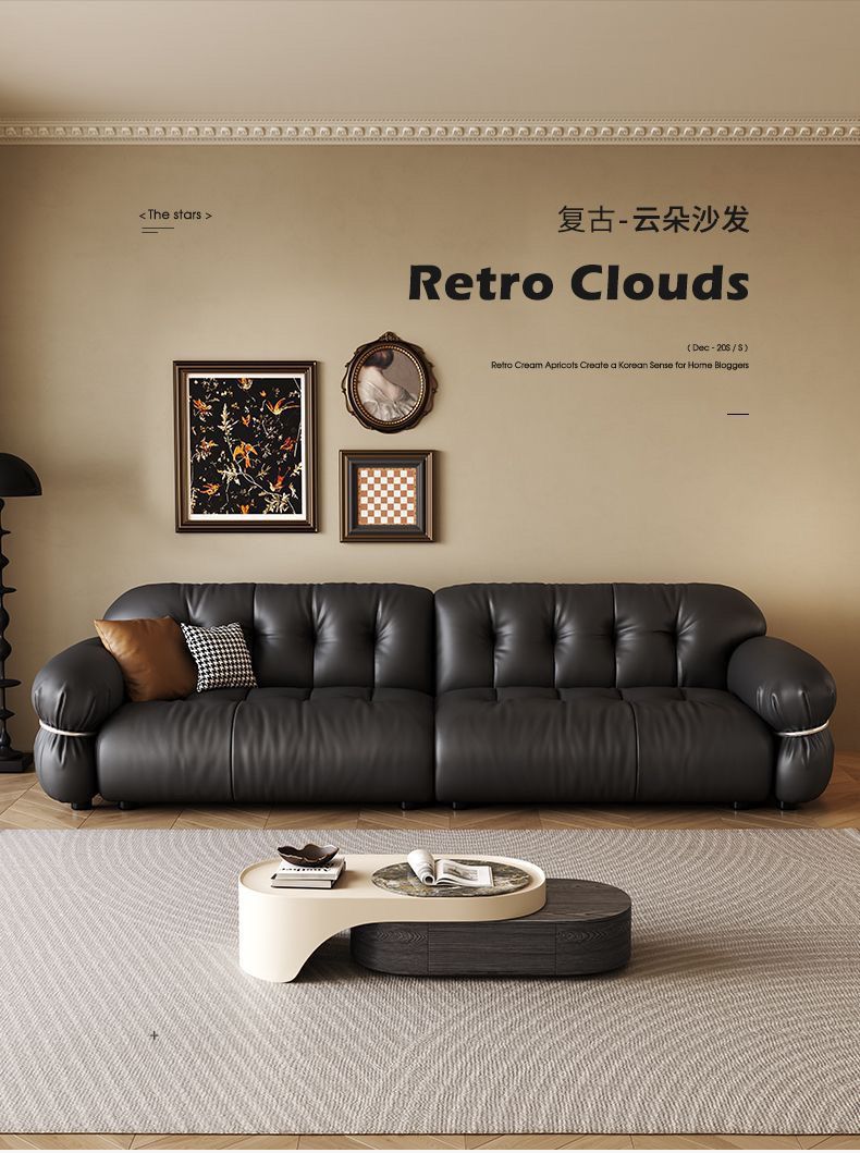 이탈리아 미니멀리스트 가죽 소파 모던 라이트 럭셔리 홈 거실 스트레이트 로우 하이 엔드 프렌치 스타일 레트로 클라우드 심플 소파
