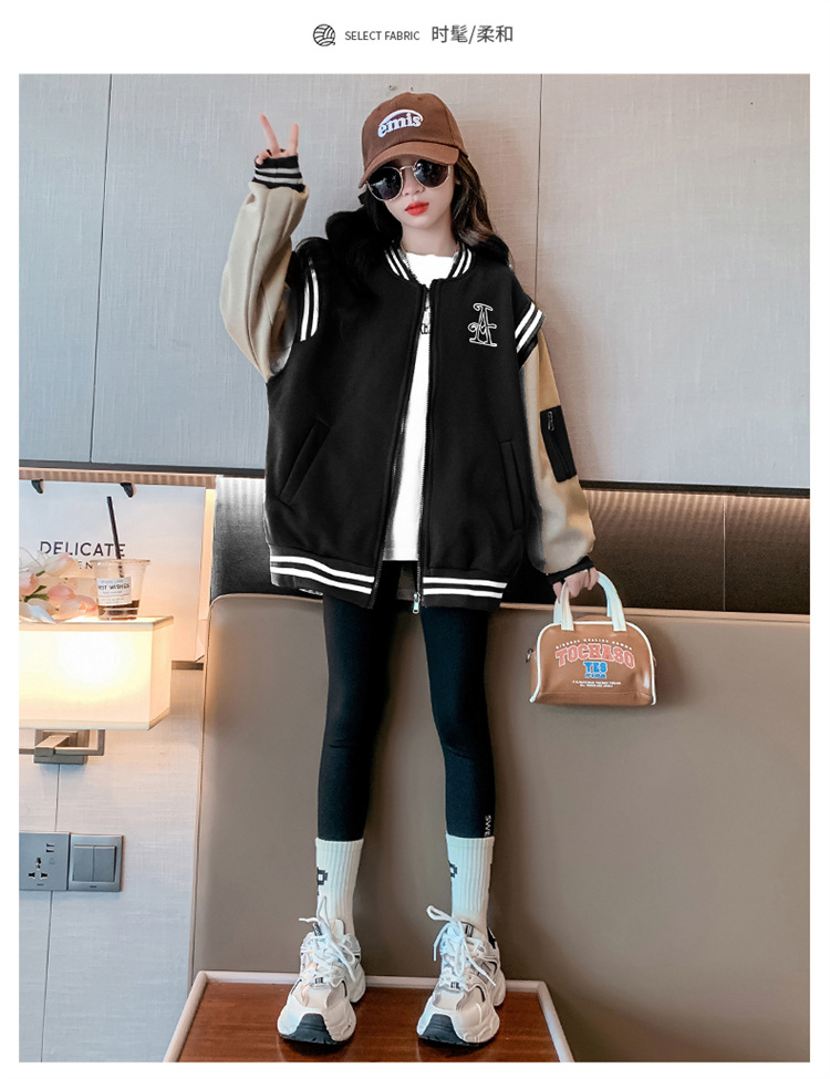소녀 코트 봄과 가을 2025 새로운 스타일 유행 어린이 재킷 가을과 겨울 기모 여자 야구 세트스토어 가기