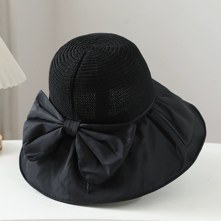 • 작은 리본 선햇 - 베이지 [방풍 로프 포함]
