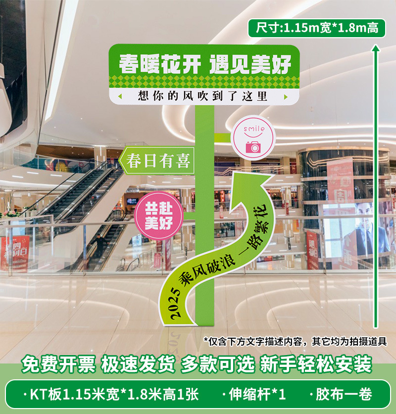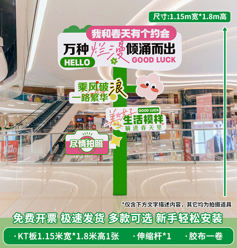 봄 시즌 분위기 장면 레이아웃 장식 학교 쇼핑몰 의류 문 가게 창 파일 상자 배너 매달려 천스토어 가기
