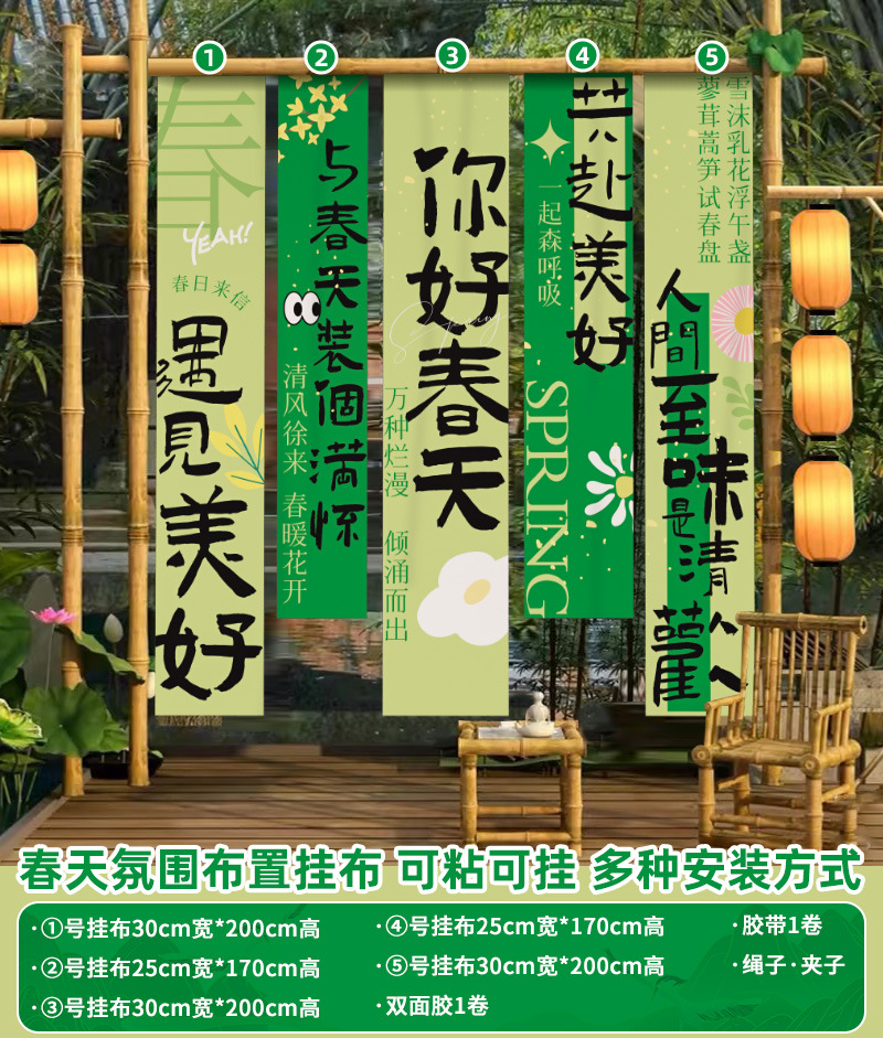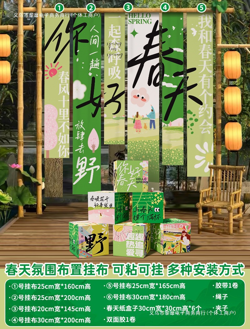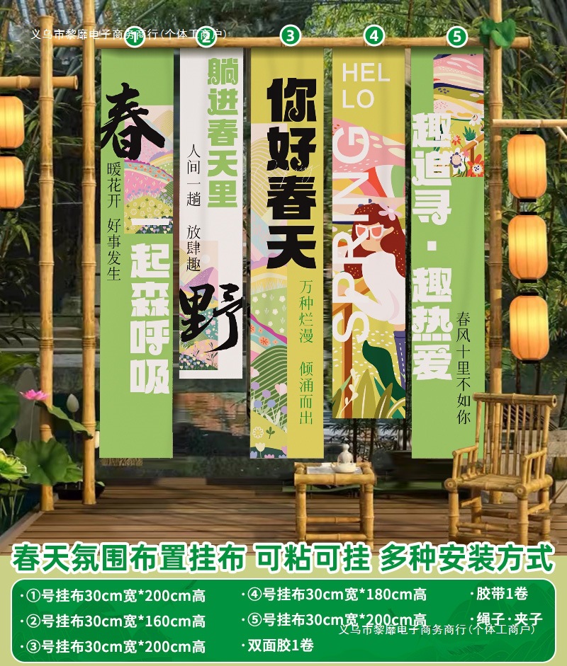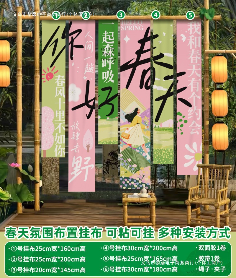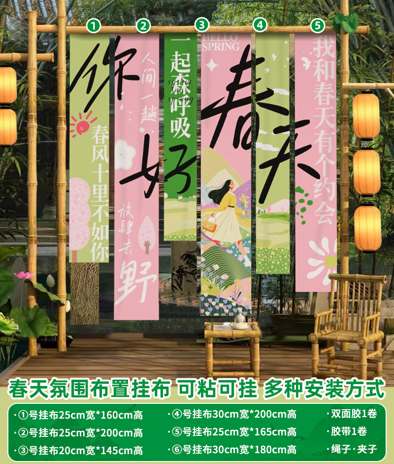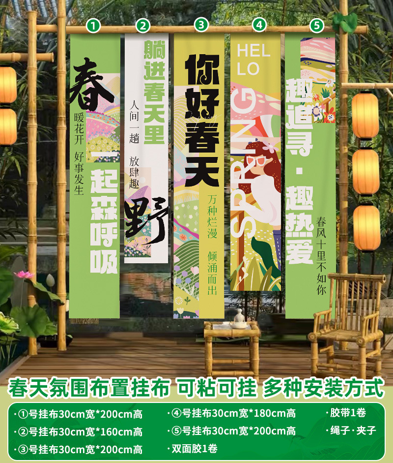 봄 시즌 분위기 장면 레이아웃 장식 학교 쇼핑몰 의류 문 가게 창 파일 상자 배너 매달려 천