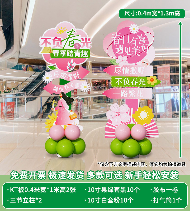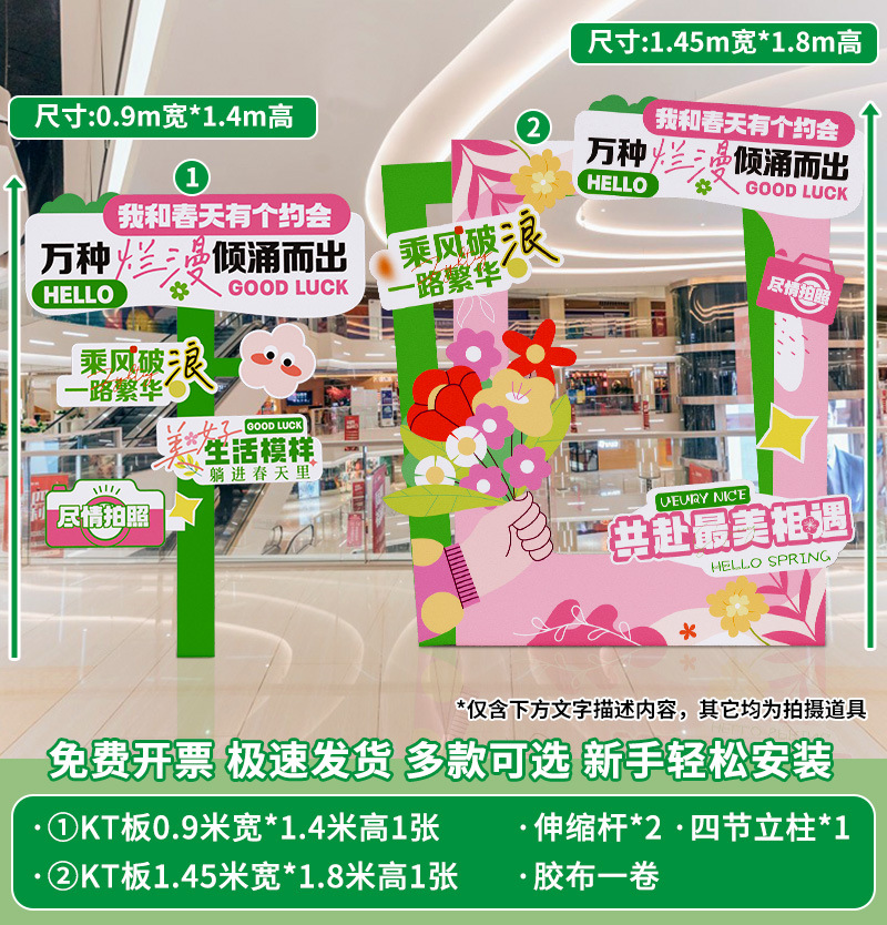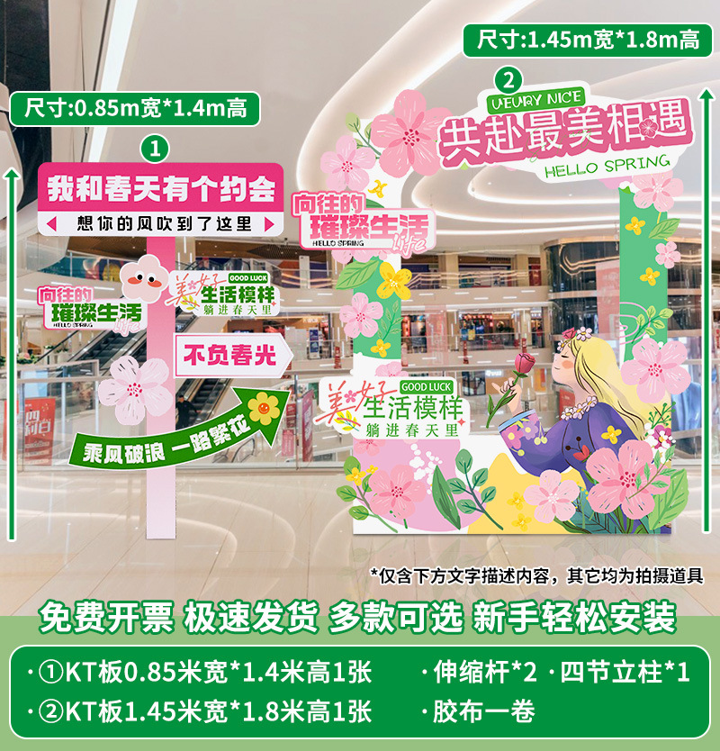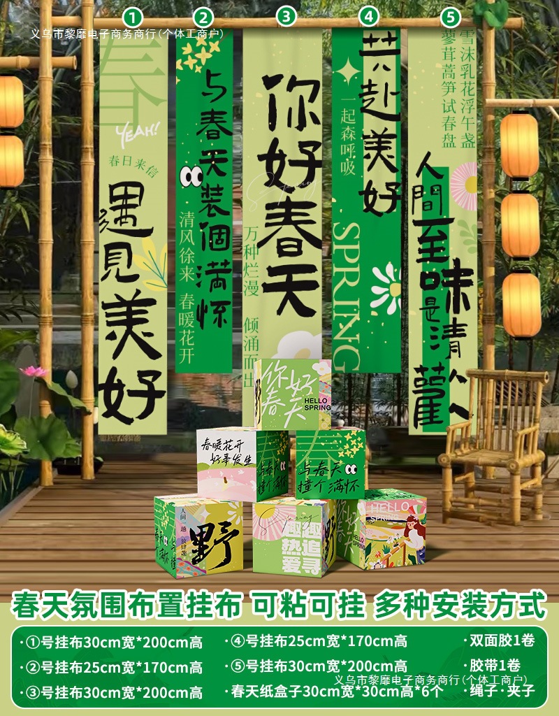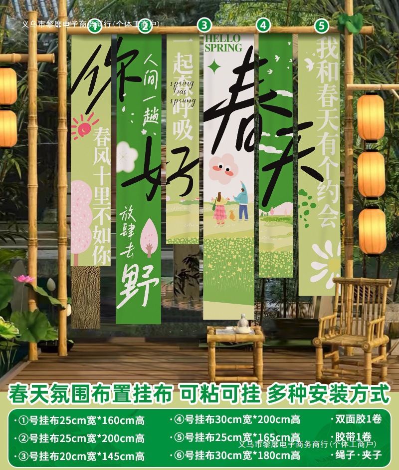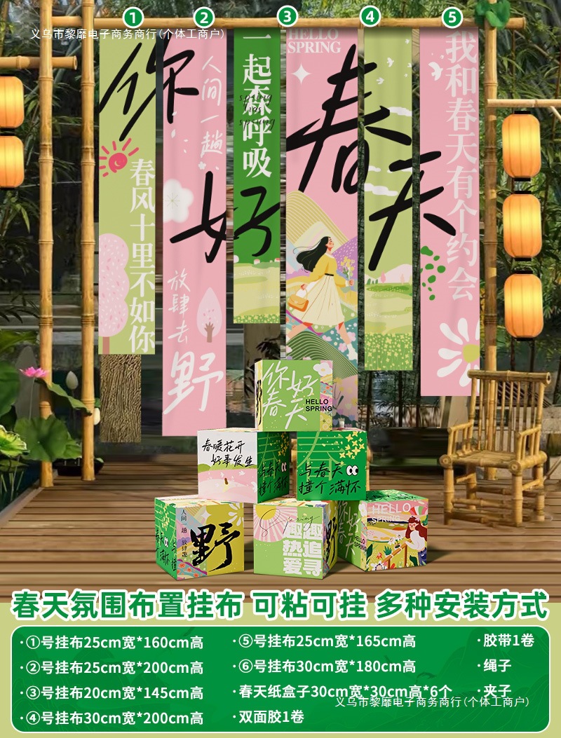 봄 시즌 분위기 장면 레이아웃 장식 학교 쇼핑몰 의류 문 가게 창 파일 상자 배너 매달려 천