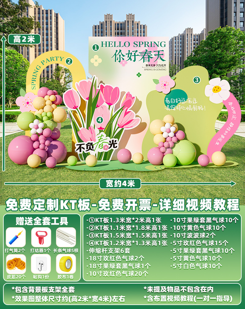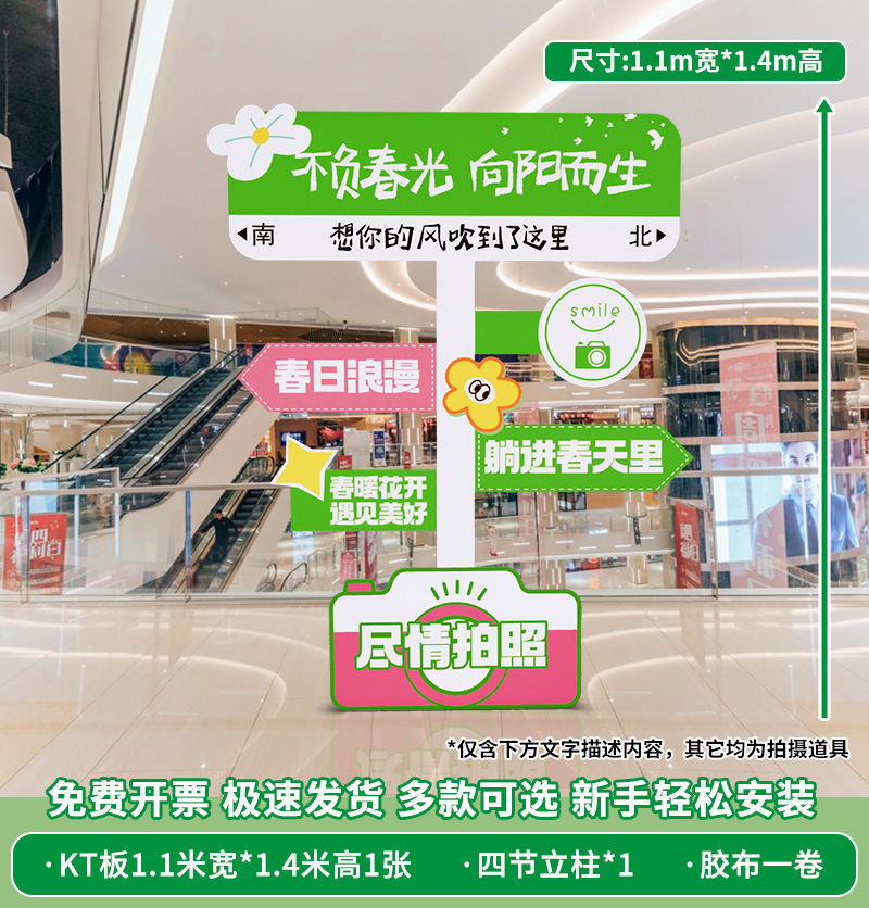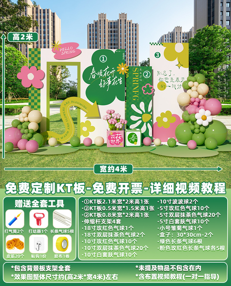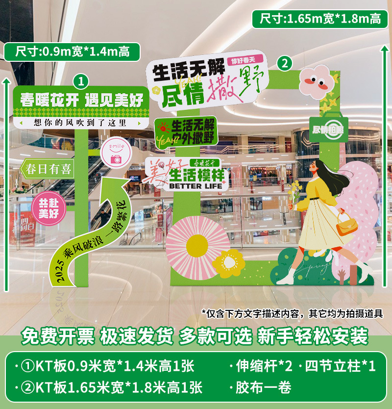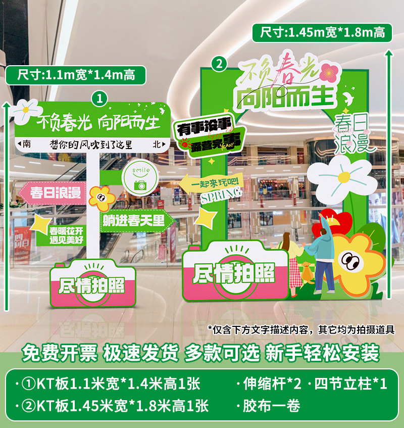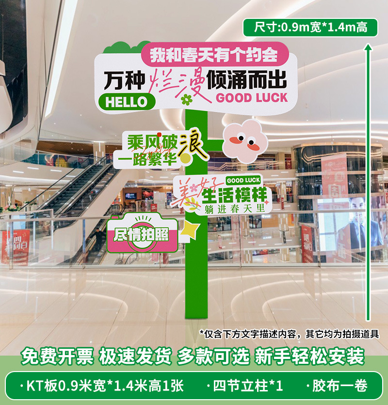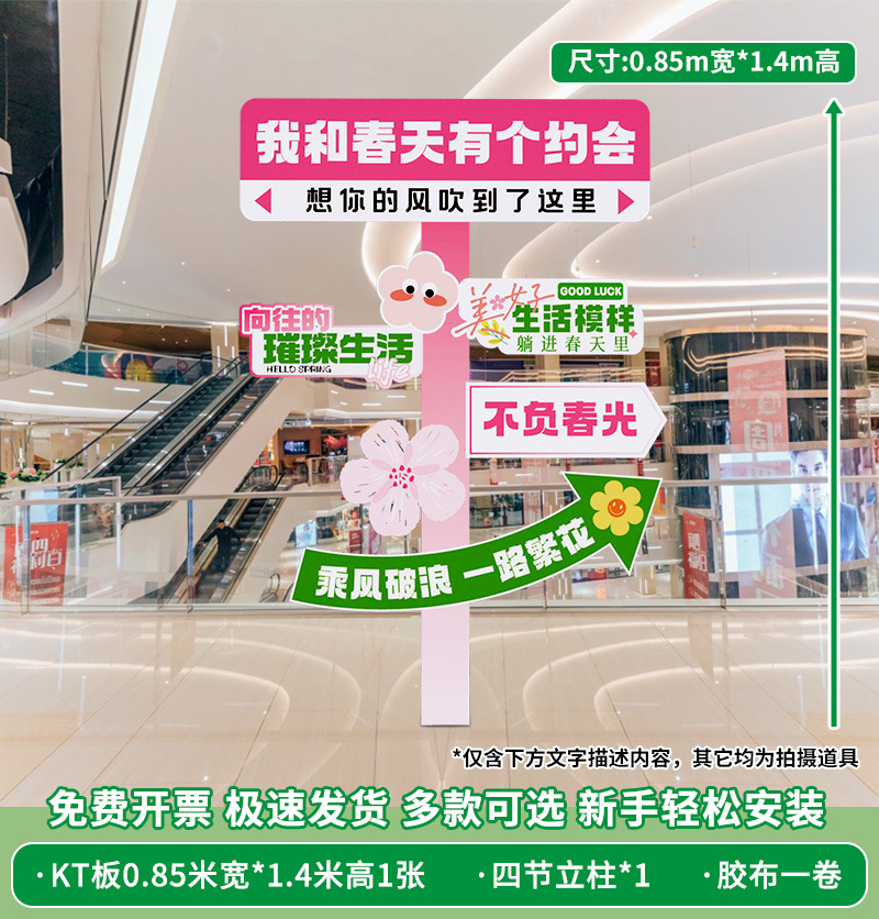 봄 시즌 분위기 장면 레이아웃 장식 학교 쇼핑몰 의류 문 가게 창 파일 상자 배너 매달려 천