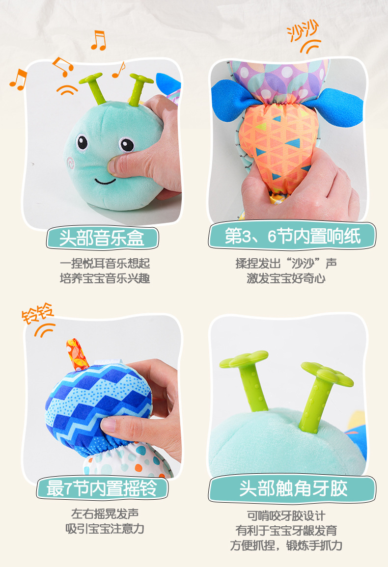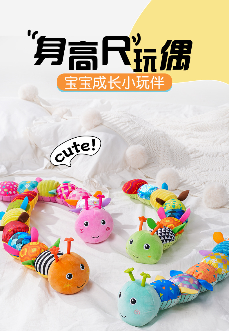 탄산 껌 애벌레 아기 키가 큰 딸랑이 인형 진정 아기 봉제 퍼그 신생아 장난감