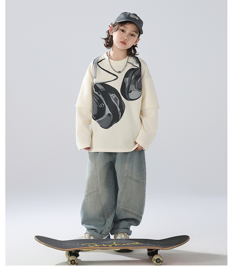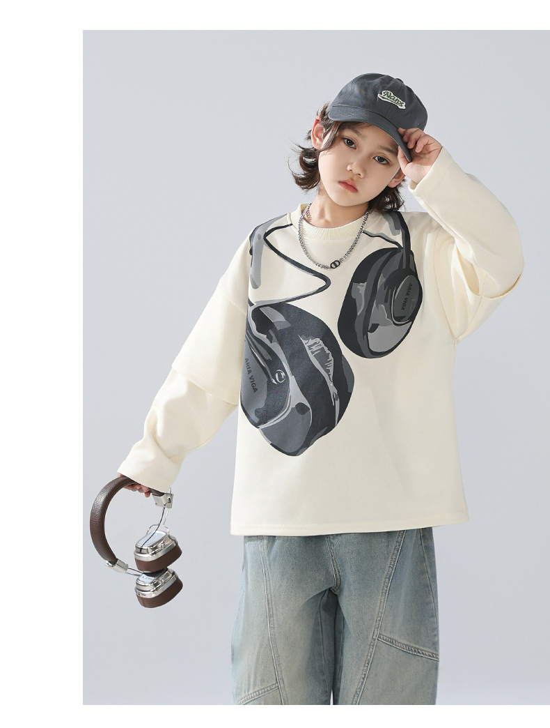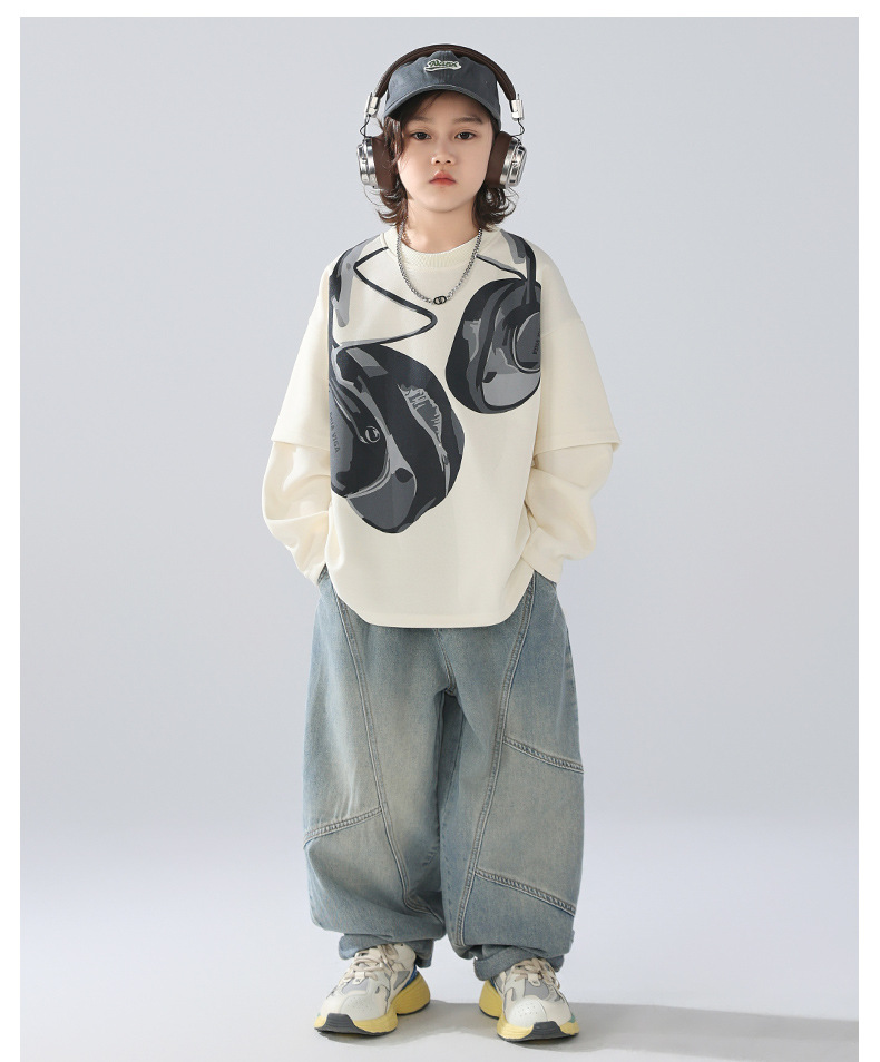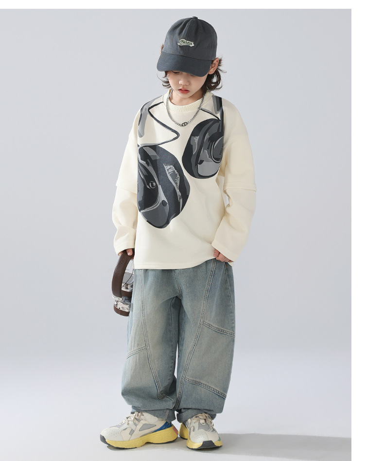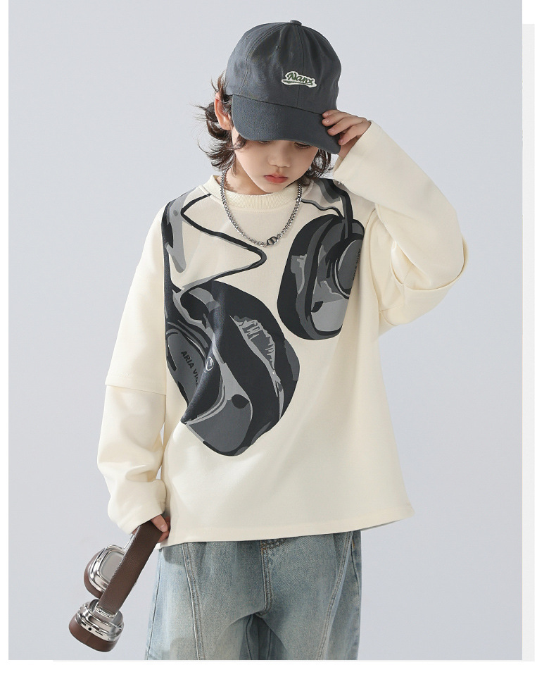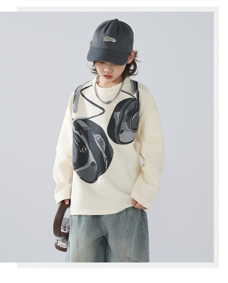 소년 봄, 가을 운동복 거리 어린이 가을 가짜 투피스 바닥 셔츠 2025 새로운 중대형 아동복 가을 의류 트렌드스토어 가기