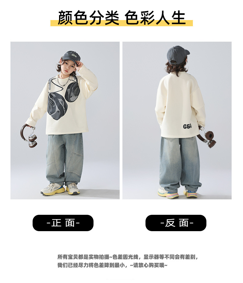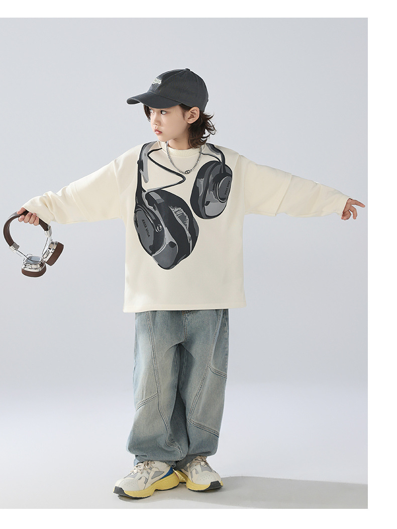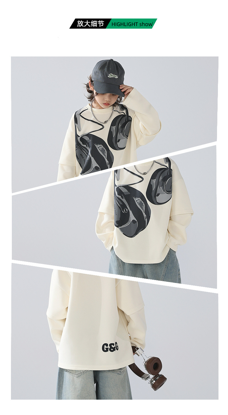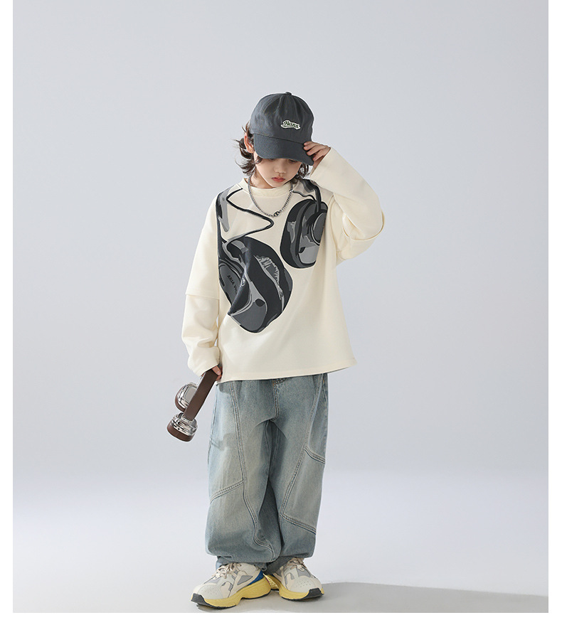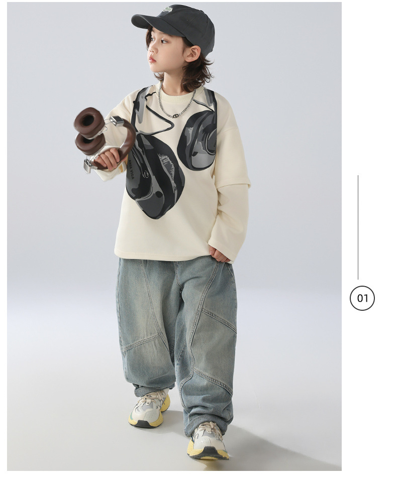 소년 봄, 가을 운동복 거리 어린이 가을 가짜 투피스 바닥 셔츠 2025 새로운 중대형 아동복 가을 의류 트렌드스토어 가기