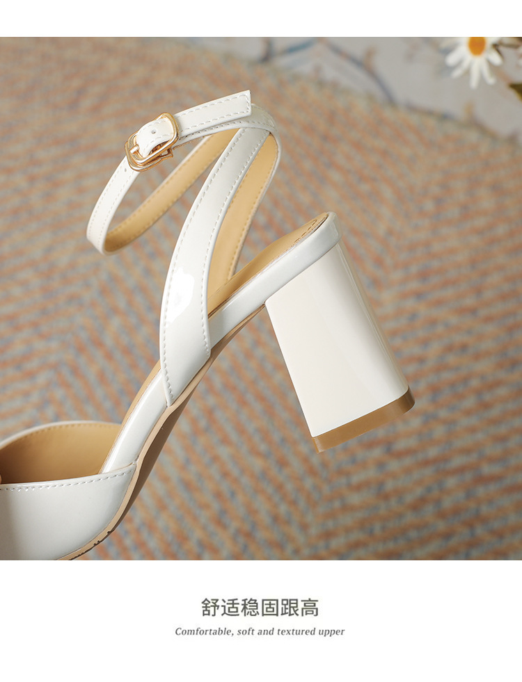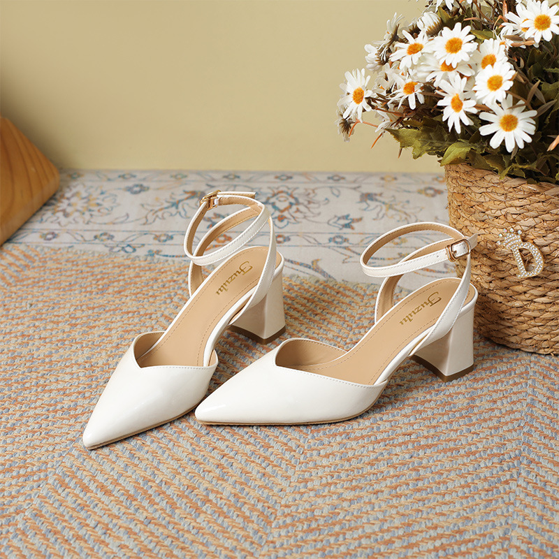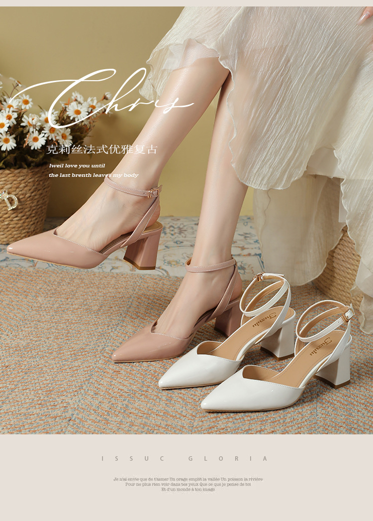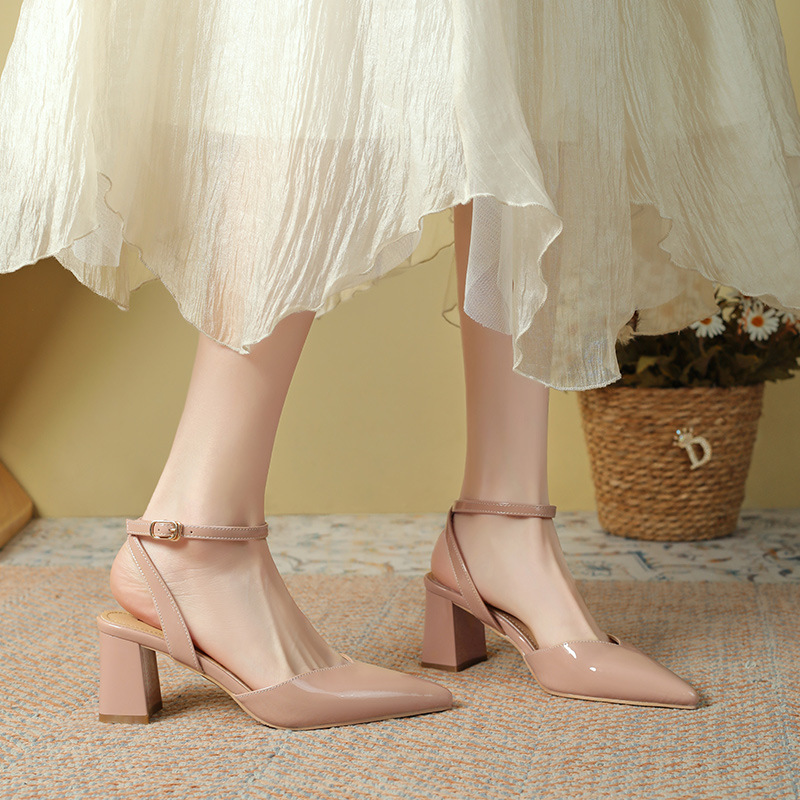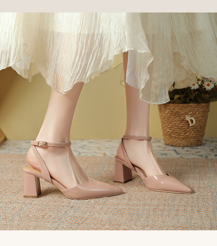 뾰족한 두툼한 뒤꿈치 누드 하이힐 신발은 머리 뒤로 빈 스트랩 여름 스커트 샌들 여성과 함께 새로운 우아한 패션스토어 가기