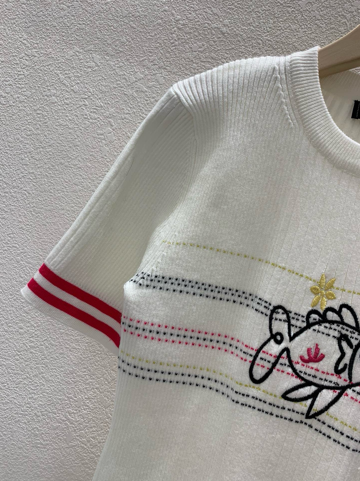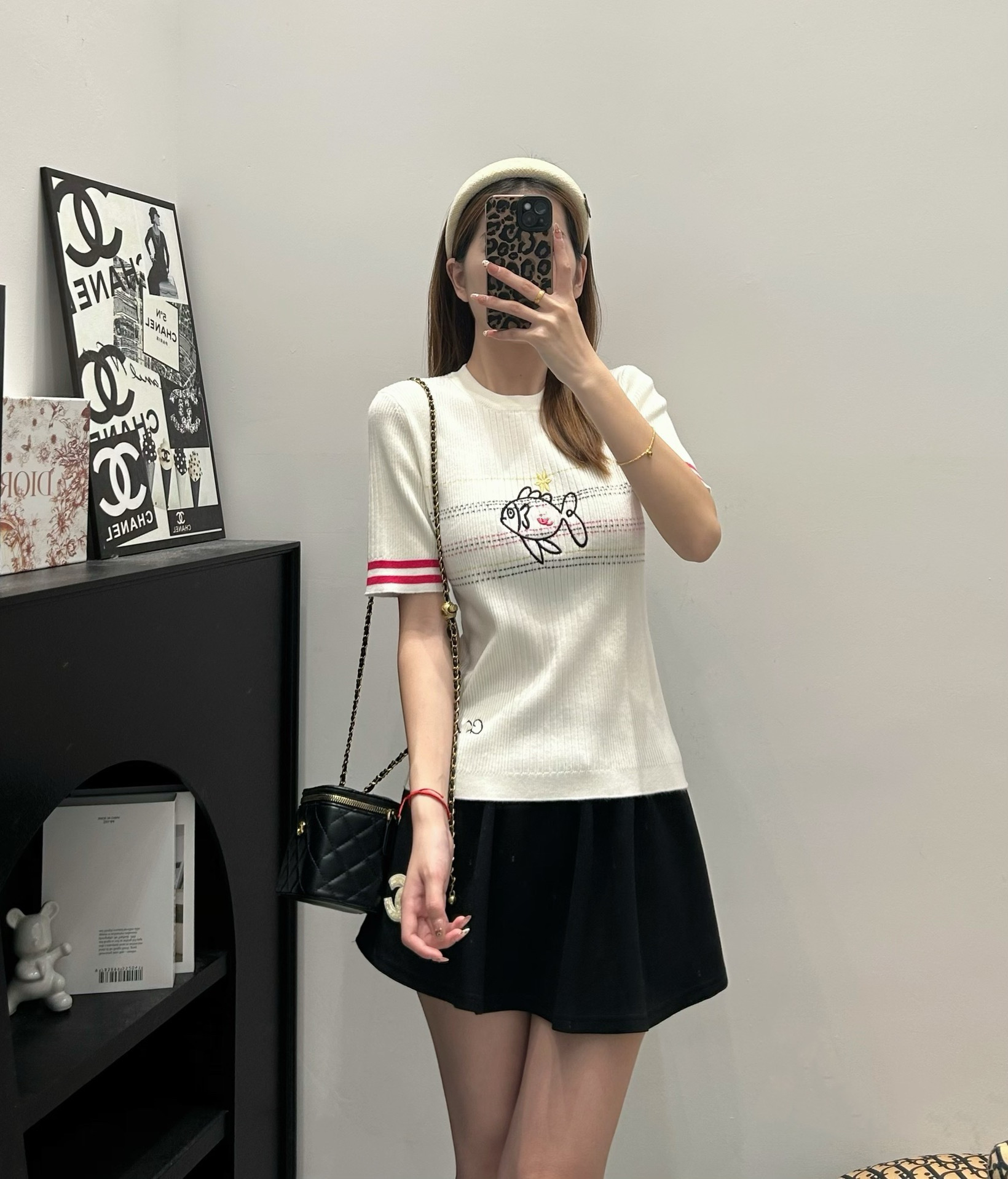 CH 홈 24 가을과 겨울 간단한 자수 작은 물고기 라인 대비 컬러 니트 짧은 소매 슬림스토어 가기