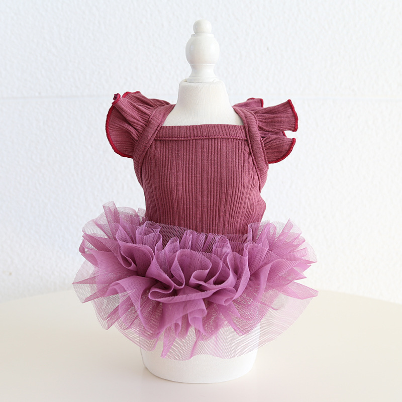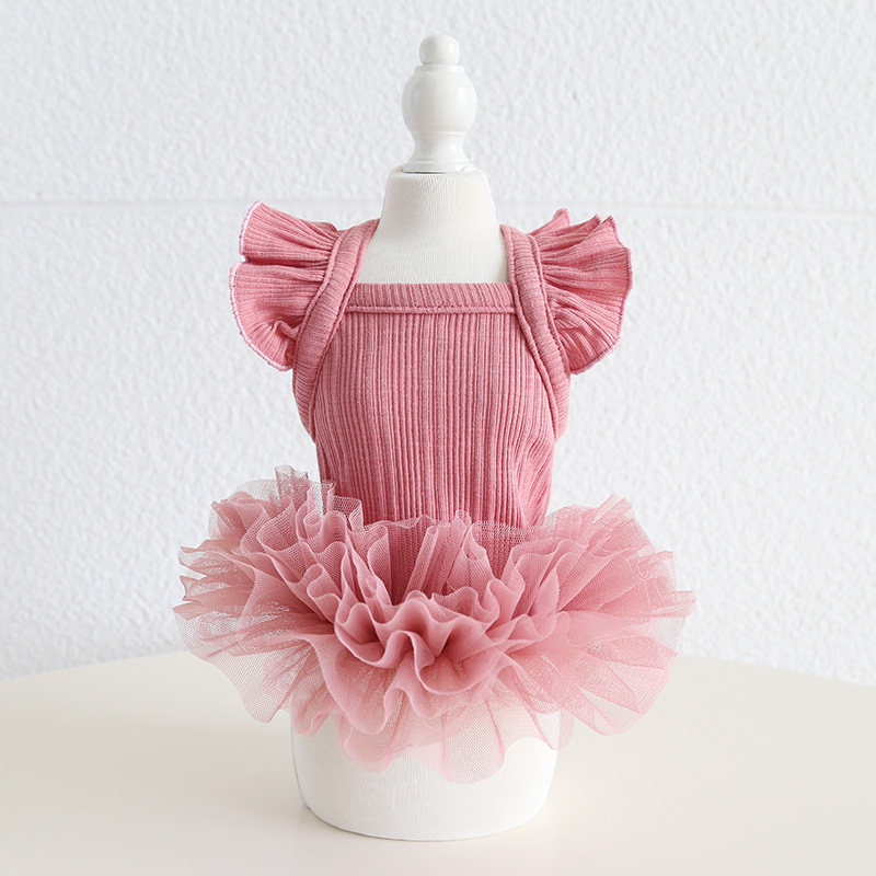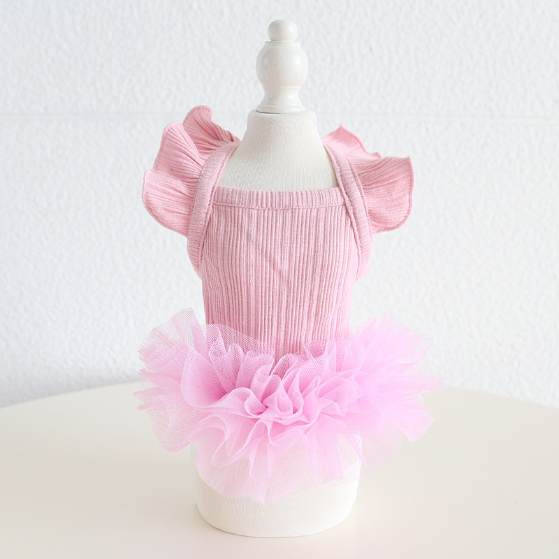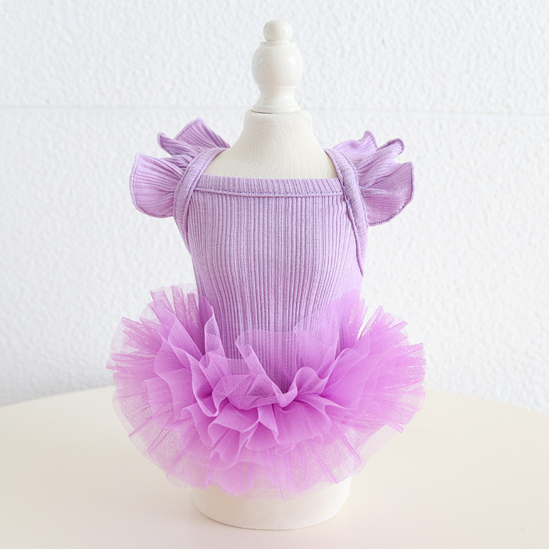 페트 스타일 엘프 비행 소매 푹신한 스커트 2025 봄과 여름 새로운 개 고양이 의류 애완 동물 강아지 의류