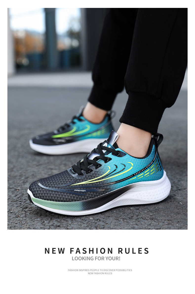 새로운 남성 신발 피쉬 와이어 메쉬 표면 통기성 컬러 패션 트렌드 남성 캐주얼 운동화 미끄럼 방지 러닝 슈즈