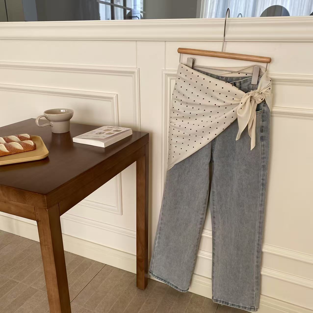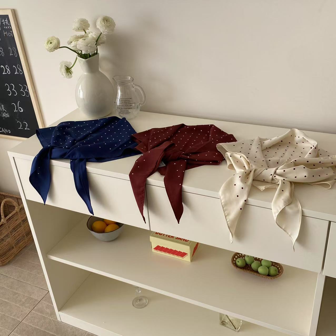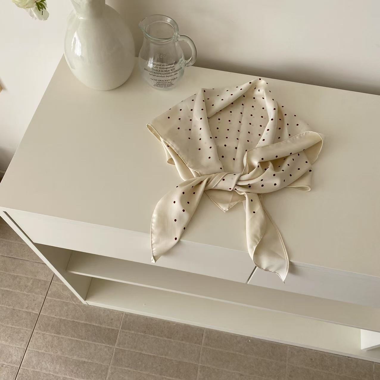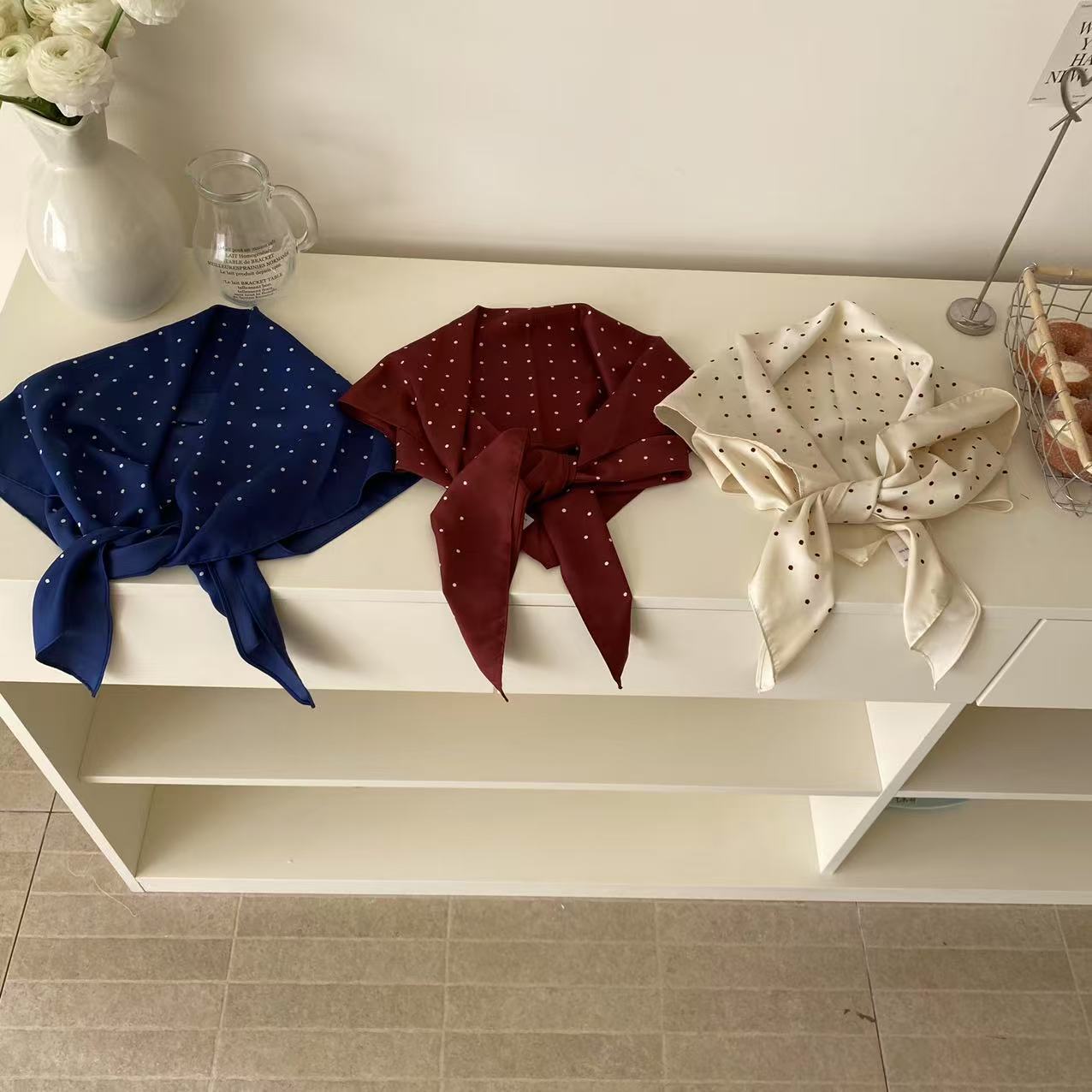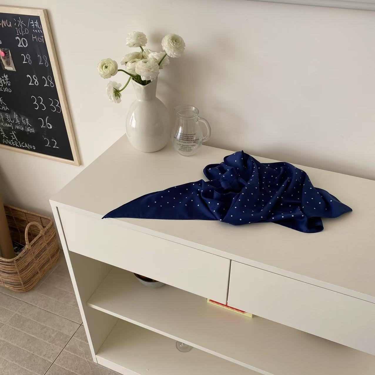 고급 로얄 블루 트윌 웨이브 도트 실크 스카프 대형 삼각형 스카프 거리 사진 헤드폰 장식 스카프 여성용스토어 가기