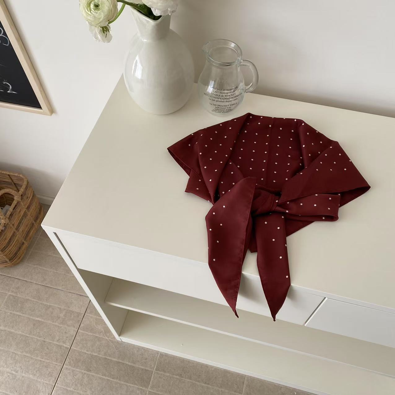 고급 로얄 블루 트윌 웨이브 도트 실크 스카프 대형 삼각형 스카프 거리 사진 헤드폰 장식 스카프 여성용