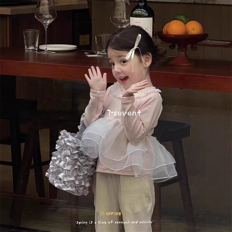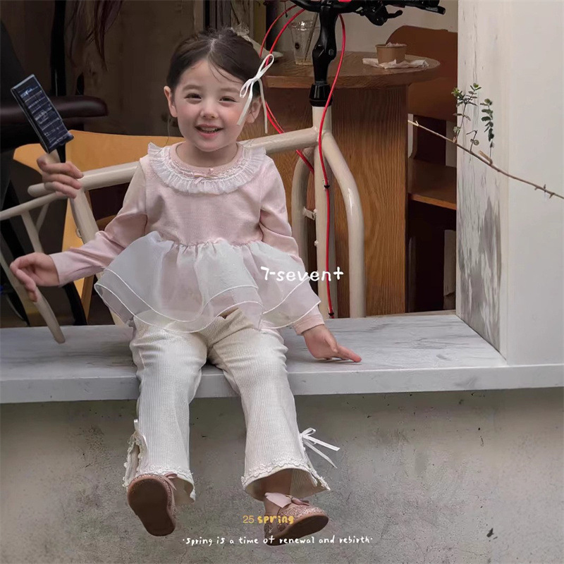 닝리 아동복 소녀 한국 스타일 착용 세트 봄 착용 달콤한 여성 보물 유행 인터넷 인기 핑크 긴 소매 탑 바지스토어 가기