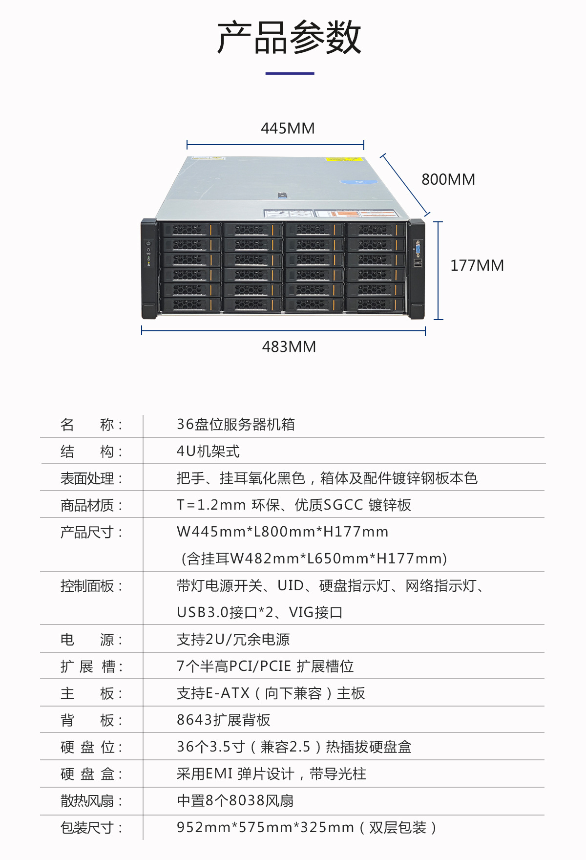 4U36 디스크 섀시 랙형 핫스왑 클라우드 스토리지 맞춤형 서버 확장 백플레인 중복 전원 공급 장치