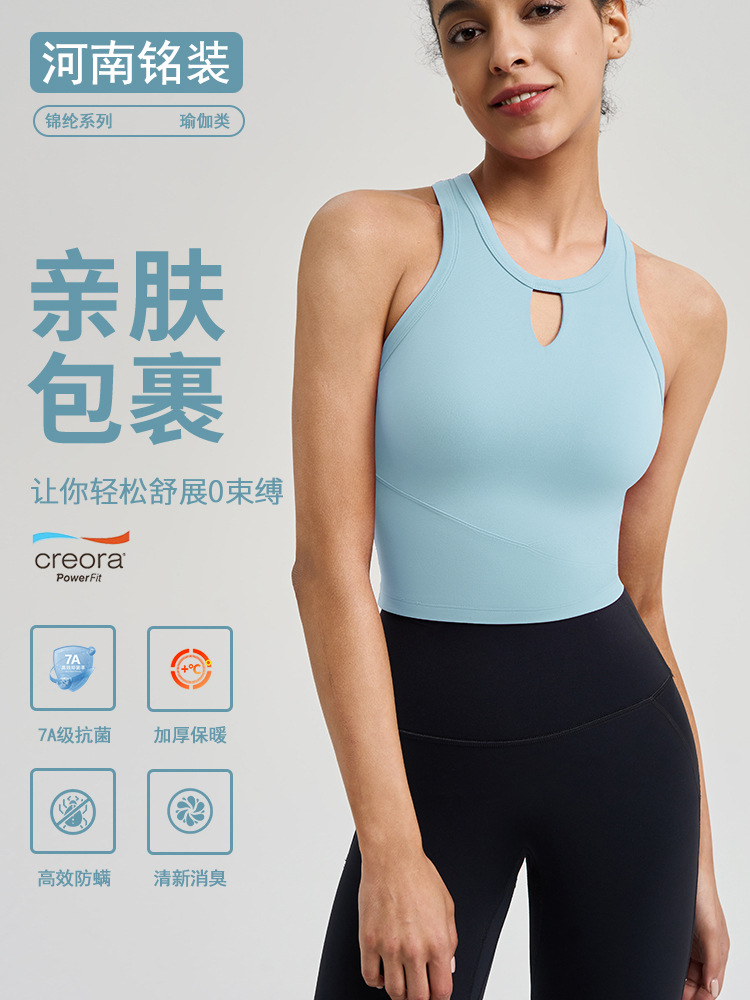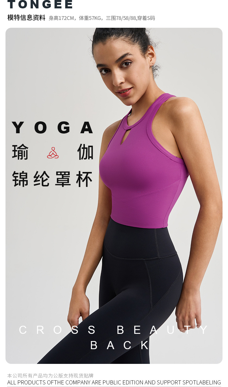 봄여름용 고정컵 워터브러쉬드 항균 스포츠 브라 아웃도어 필라테스 뷰티백 피트니스 요가탑 여성용