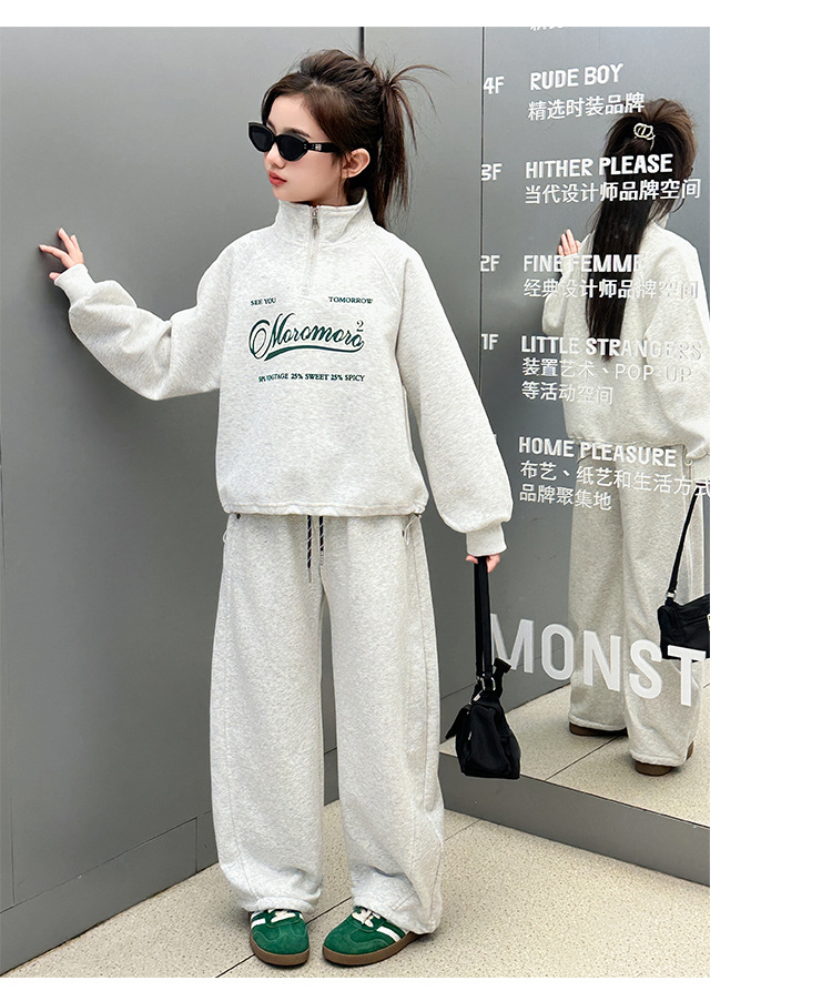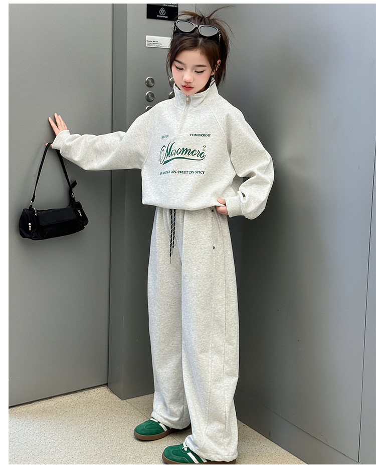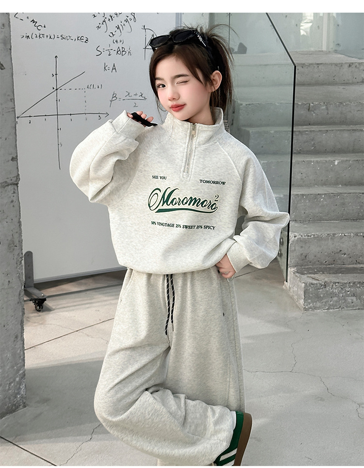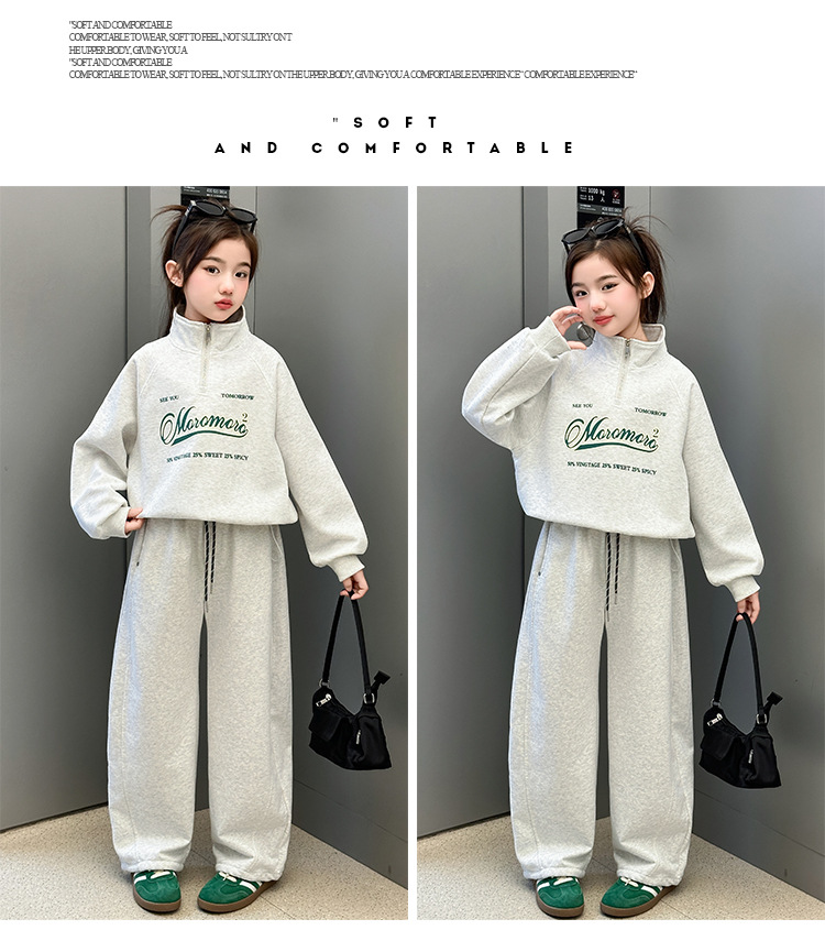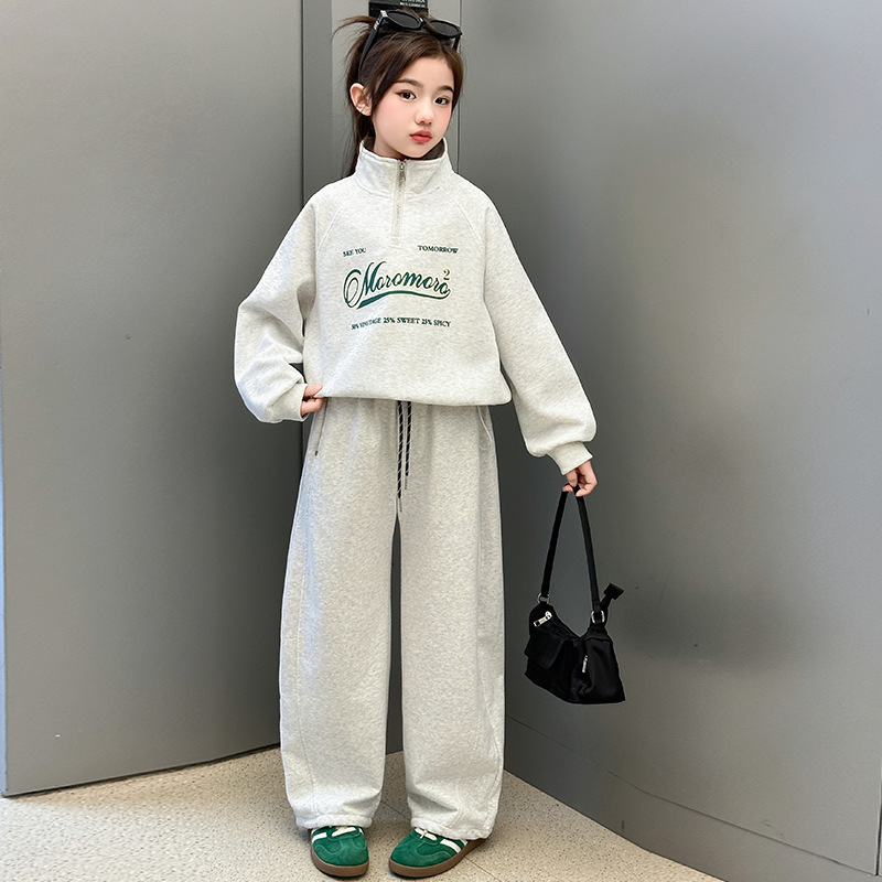 여자 세트 봄 새로운 한국 스타일 어린이 스포츠 온라인 인기 웨스턴 스타일 스웨트 학생 스트레이트 바지 유행 후 저우 질리