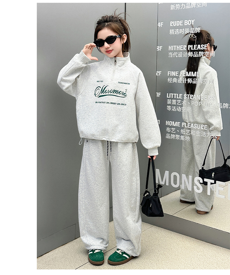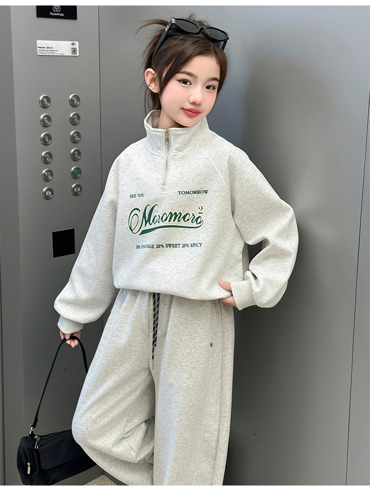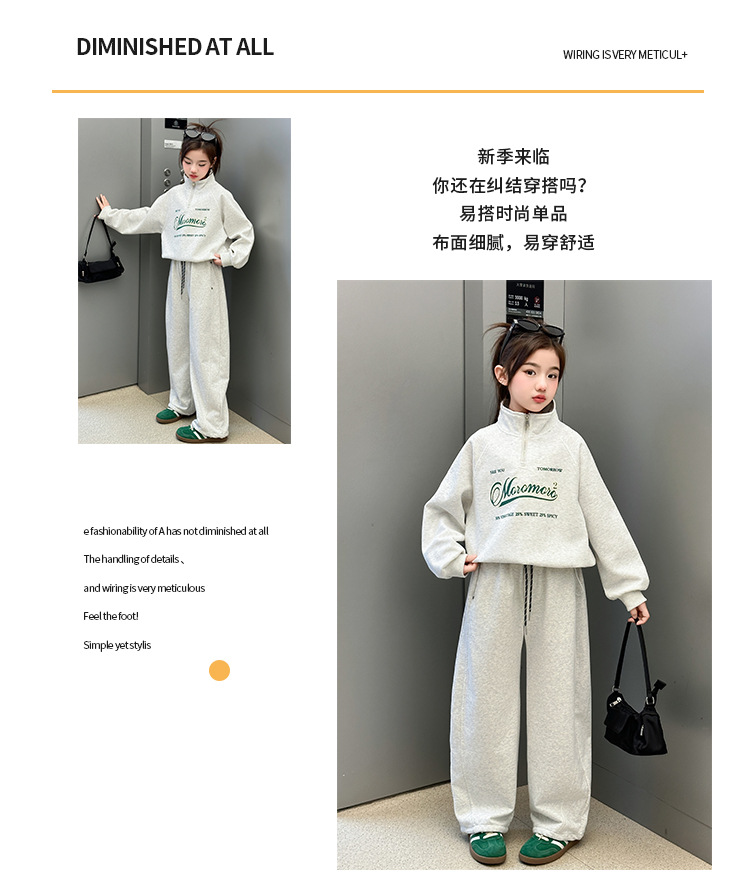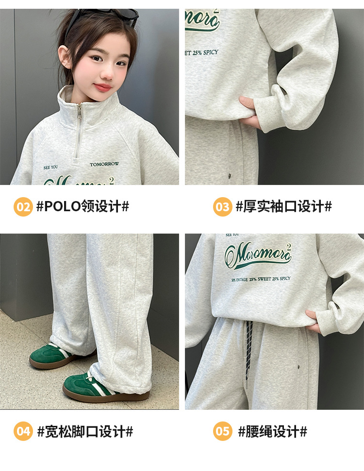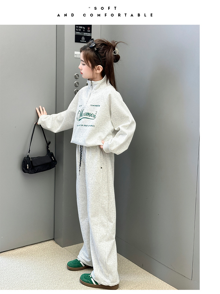 여자 세트 봄 새로운 한국 스타일 어린이 스포츠 온라인 인기 웨스턴 스타일 스웨트 학생 스트레이트 바지 유행 후 저우 질리