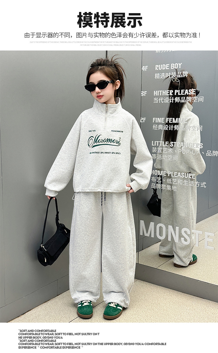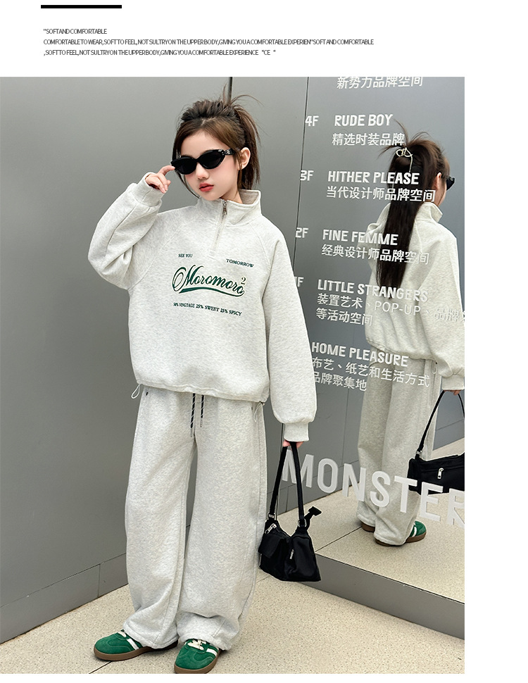 여자 세트 봄 새로운 한국 스타일 어린이 스포츠 온라인 인기 웨스턴 스타일 스웨트 학생 스트레이트 바지 유행 후 저우 질리스토어 가기