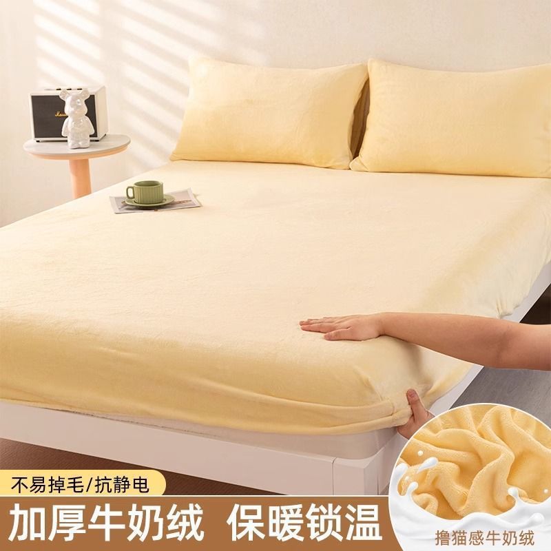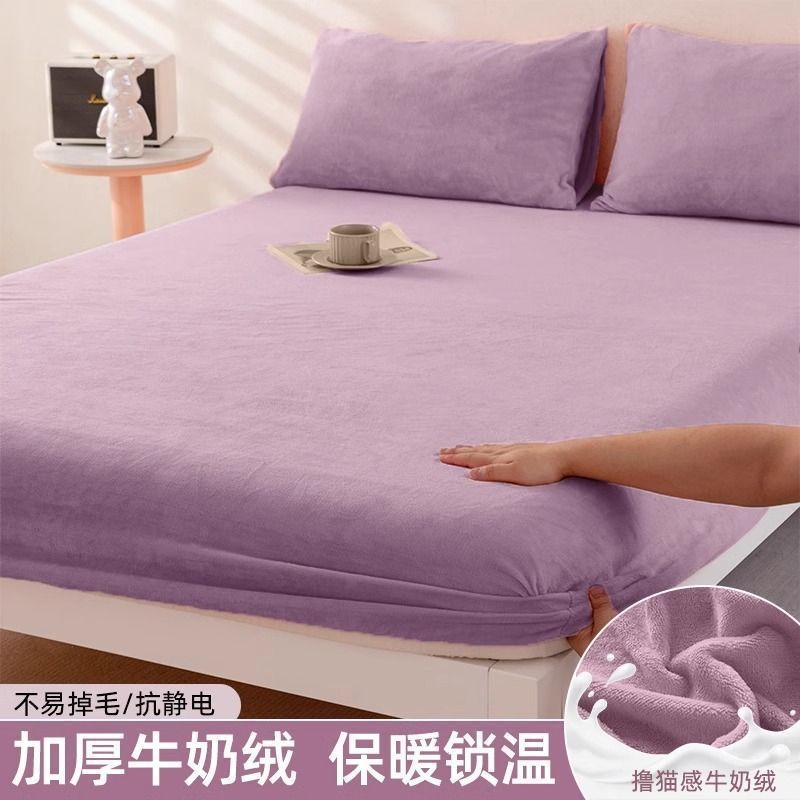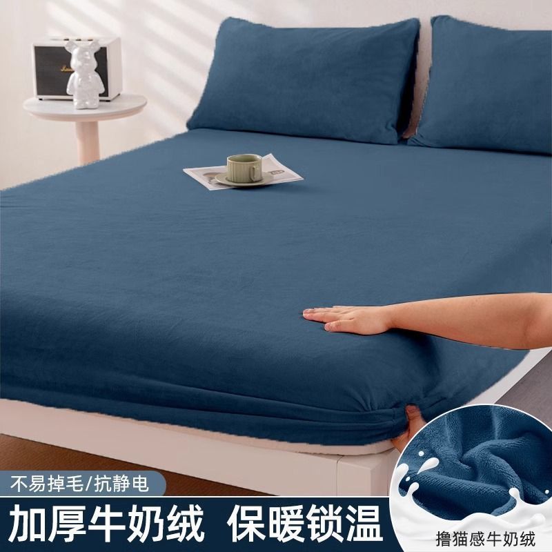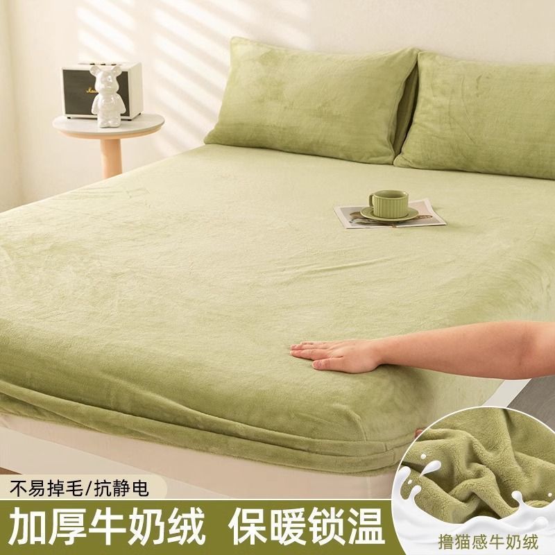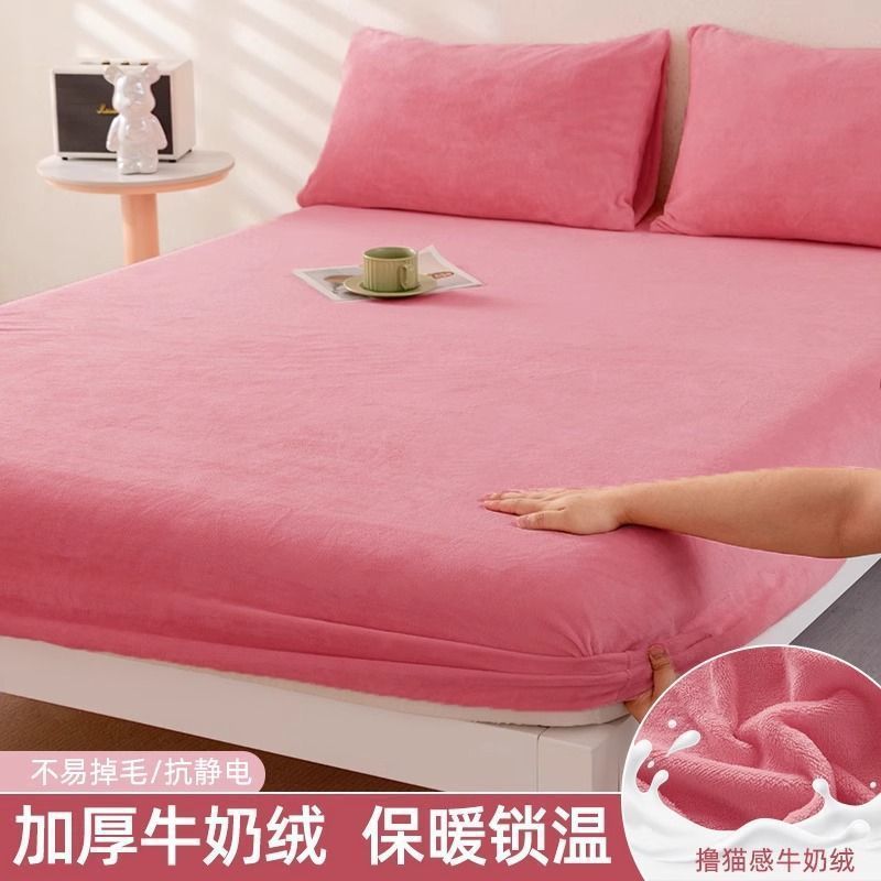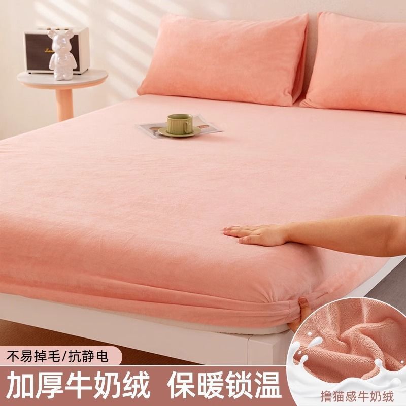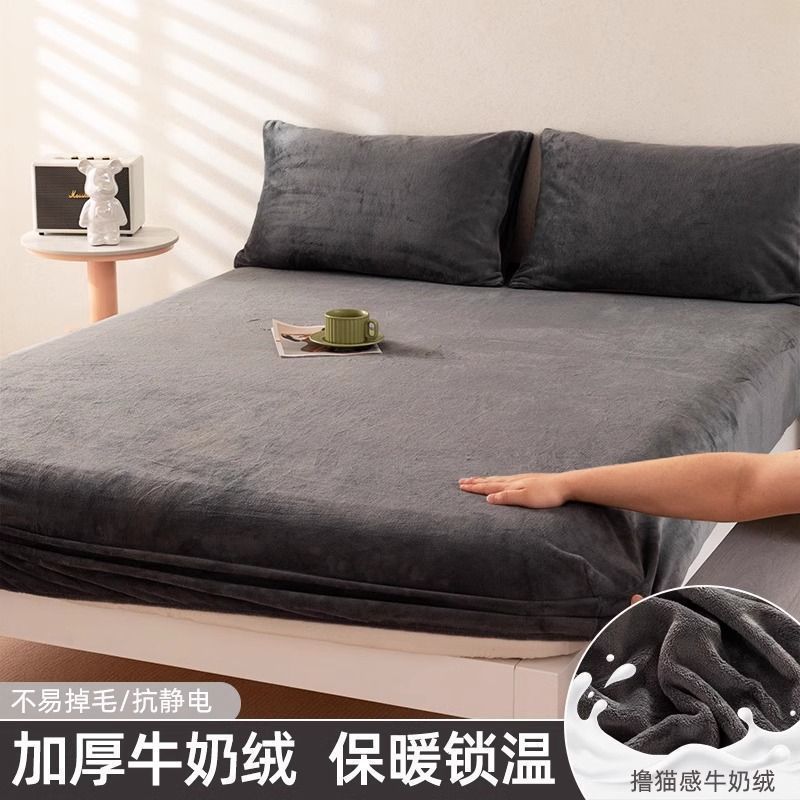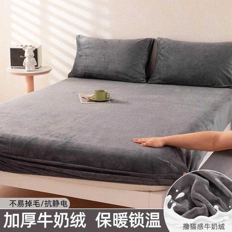 우유 양털 침대 커버 싱글 피스 코랄 양털 침대 커버 기모 매트리스 커버 보호 커버 겨울 학생 기숙사 따뜻한 침대 시트스토어 가기