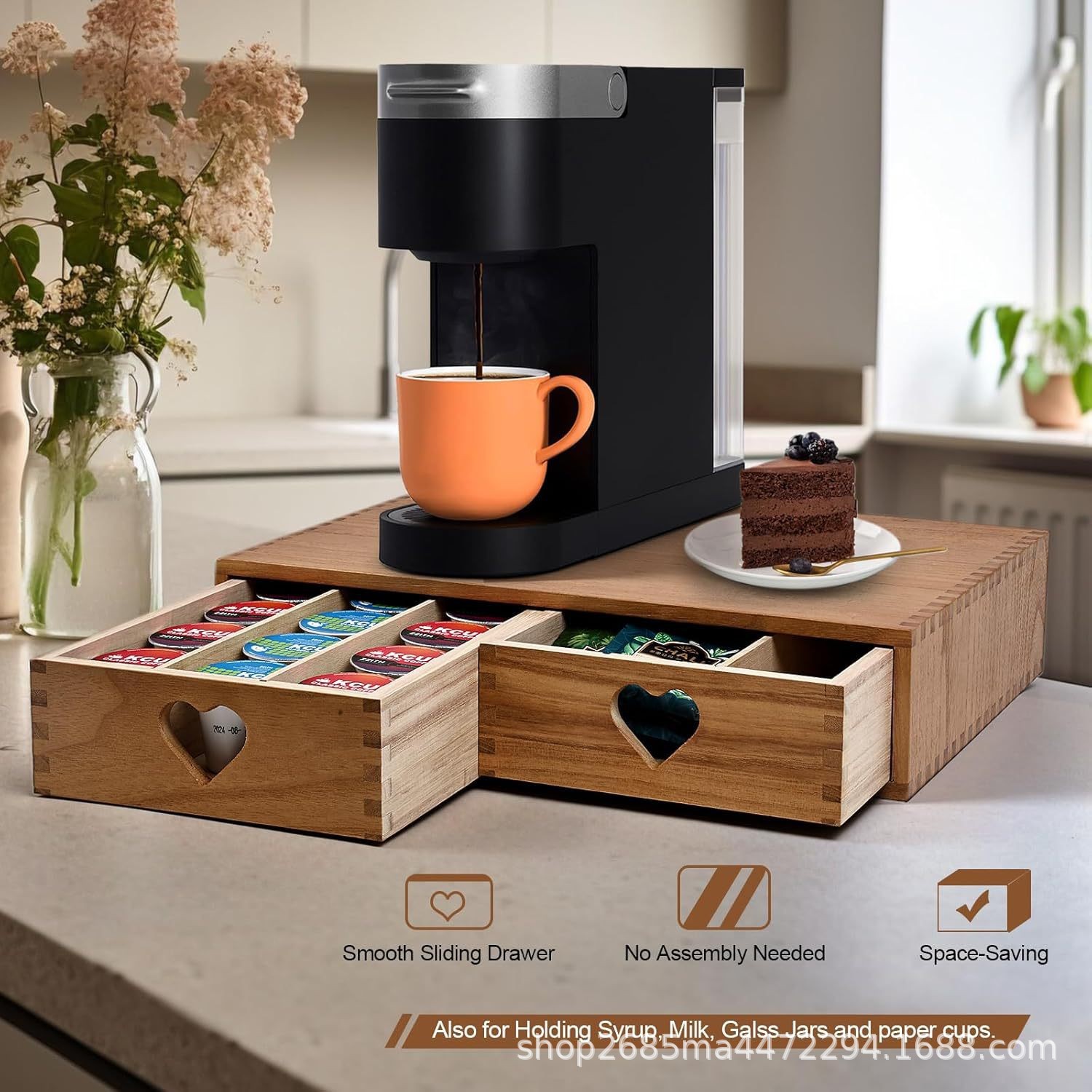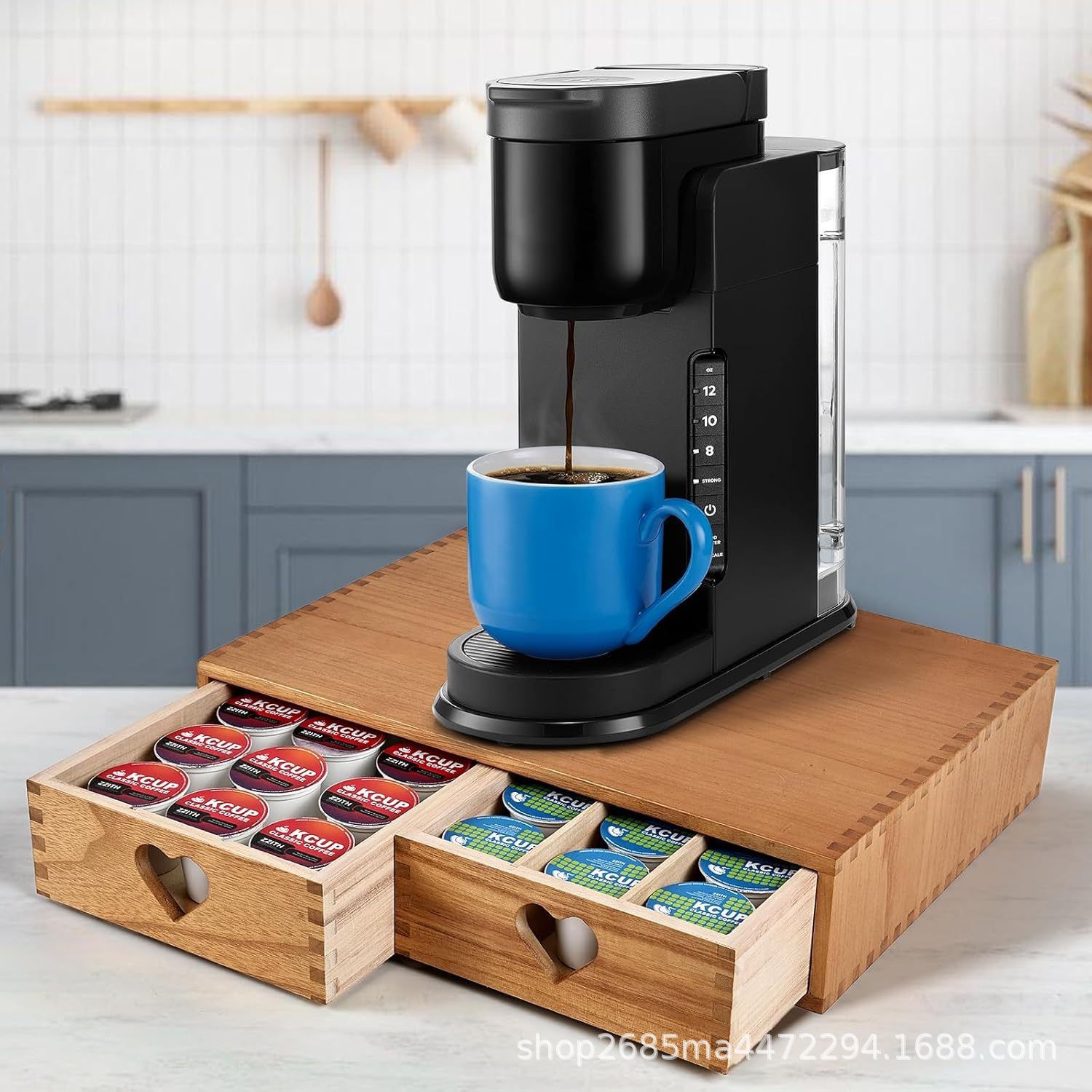 국경 간 나무 커피 캡슐 저장 상자 데스크탑 커피 기계 저장베이스 풀아웃 티백 구획 저장 상자스토어 가기