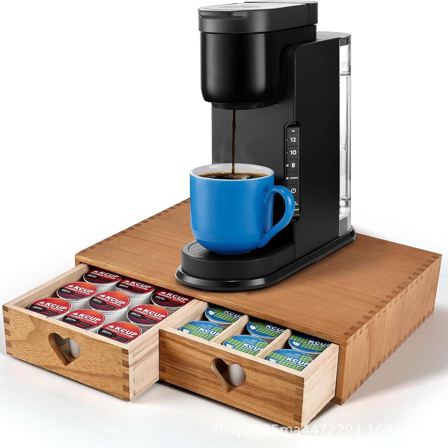 국경 간 나무 커피 캡슐 저장 상자 데스크탑 커피 기계 저장베이스 풀아웃 티백 구획 저장 상자