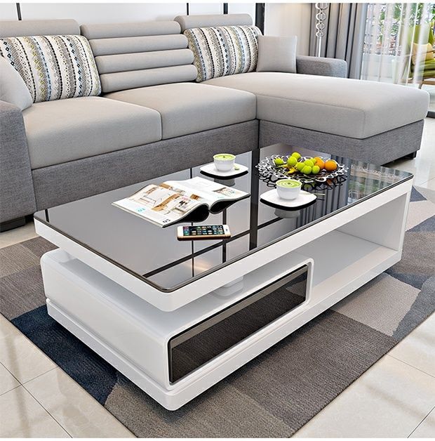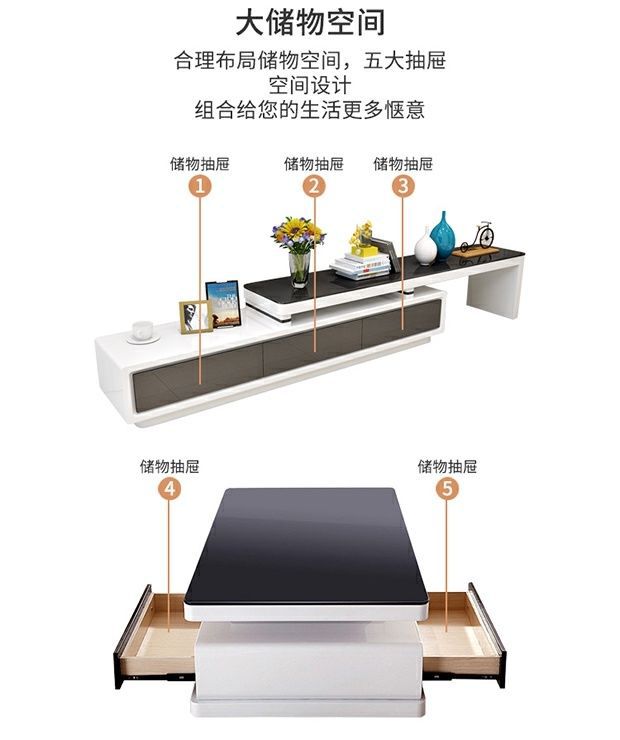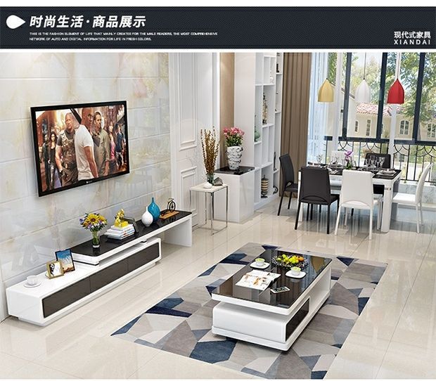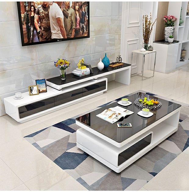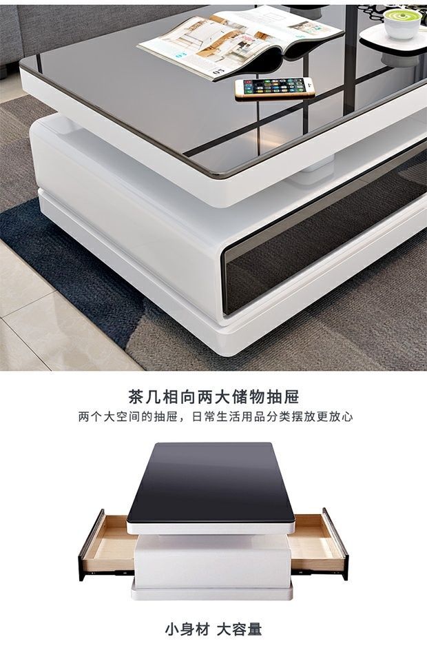 현대 간단한 작은 아파트 거실 홈 커피 테이블 TV 캐비닛 세트 강화 유리 개폐식 바닥 캐비닛 티 테이블 조합스토어 가기