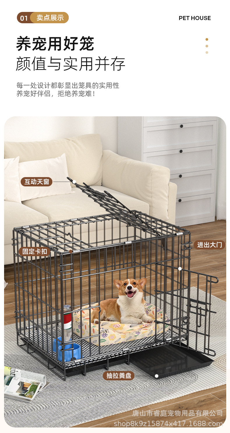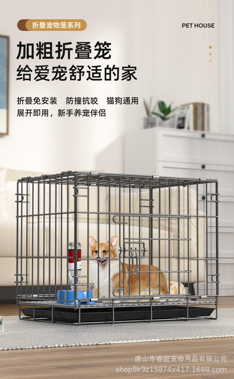 개 케이지 중형 및 작은 개 애완 동물 케이지 울타리 두껍게 두꺼운 큰 개 가정 접히는 개집 차 케이지 고양이 케이지