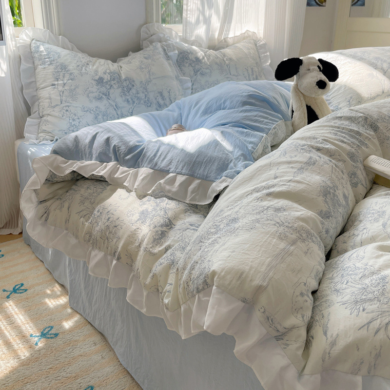 • 한국식 레이스 워싱 코튼 잉크 페인팅 블루