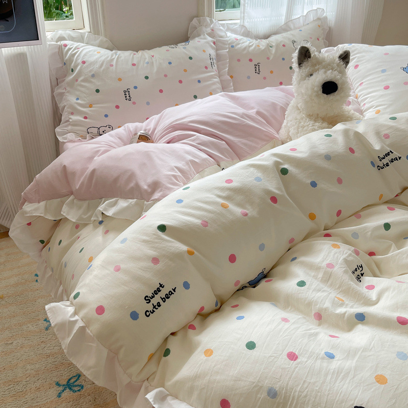 • 한국식 레이스 워싱 코튼 컬러 폴카 도트 베어