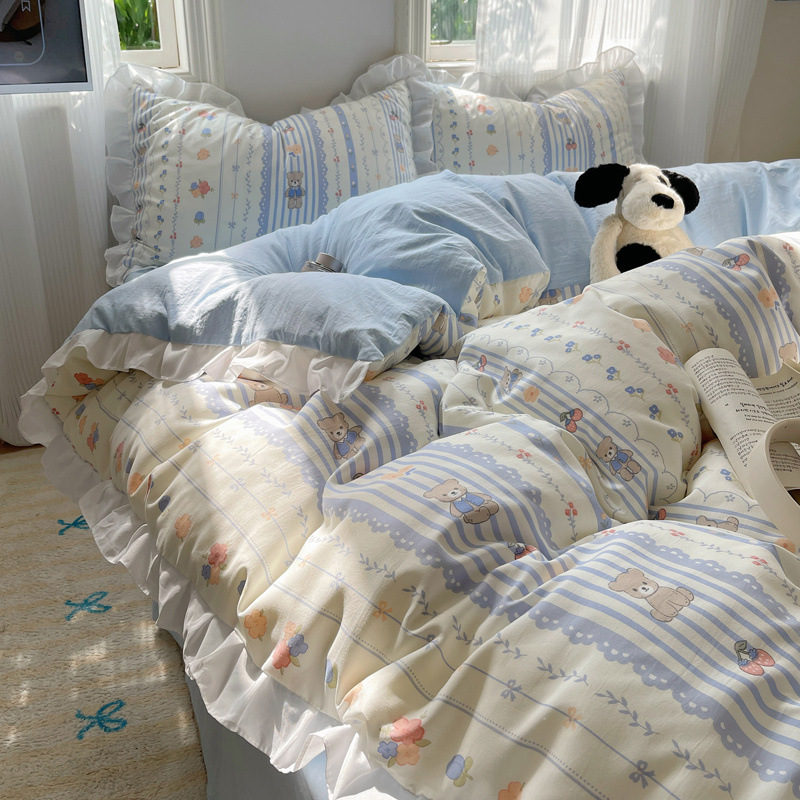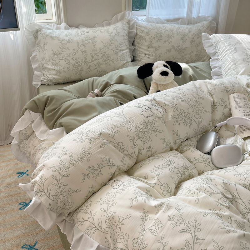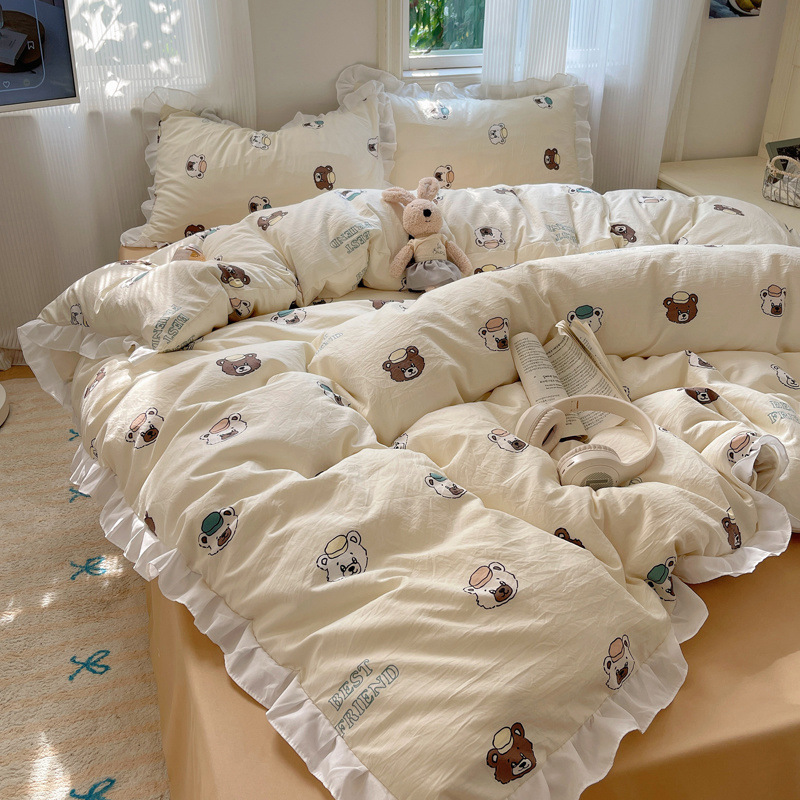 2024 새로운 유형 A 사계절 피부 친화적이고 부드러운 간단하고 편안한 가벼운 럭셔리 레이스 세척 코튼 베드 퀼트 커버 4 피스 세트