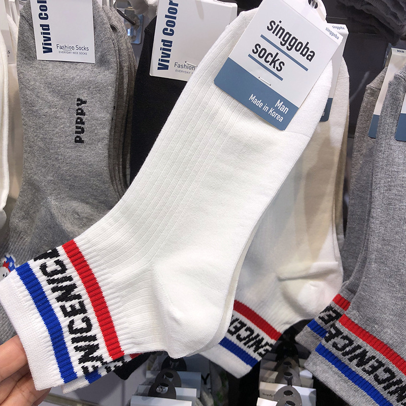 2025 한국 봄과 여름 새로운 남자 양말 singgoba 줄무늬 편지 스포츠 면화 양말 땀 흡수 통기성 로우 사이드 양말스토어 가기