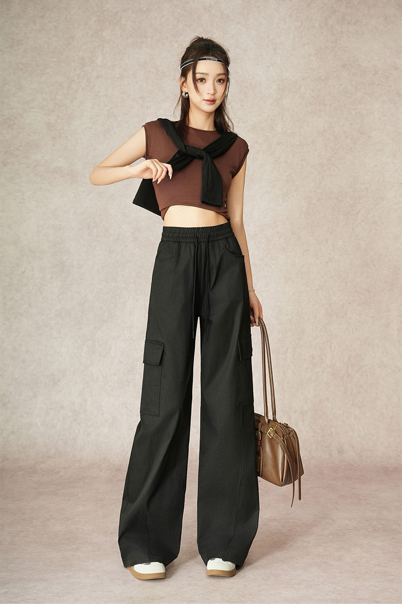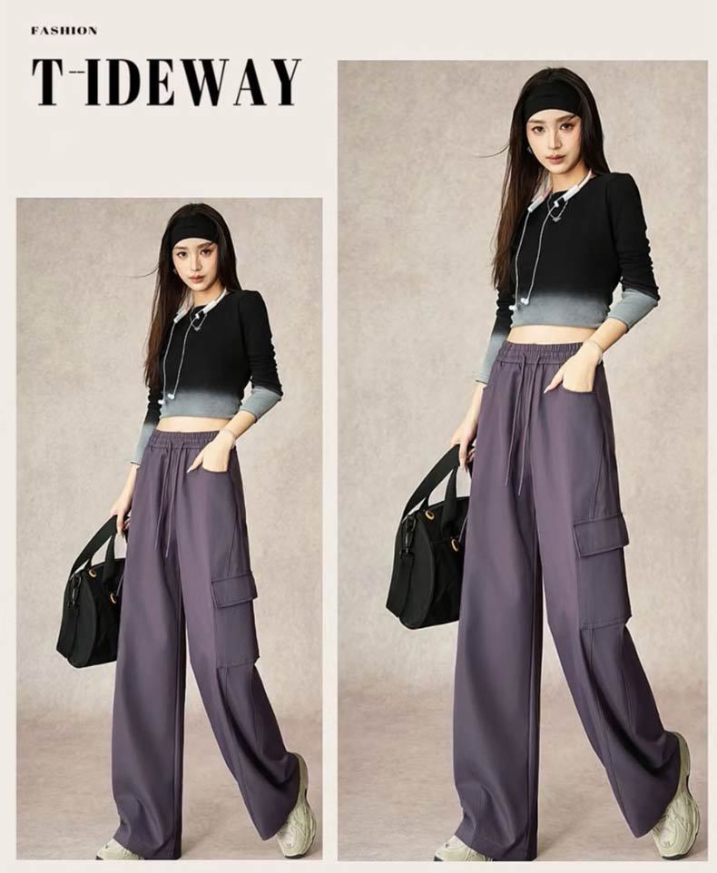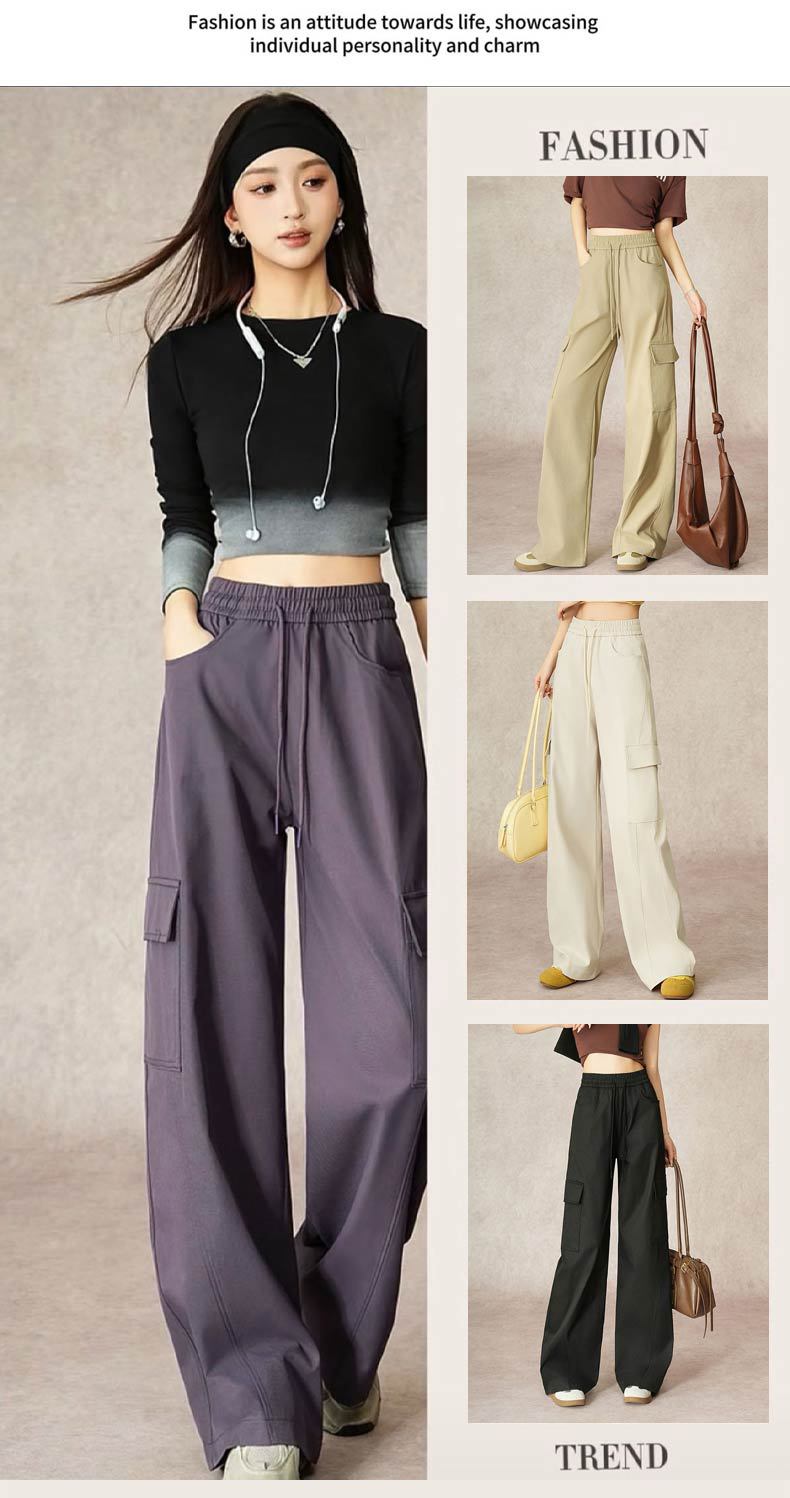 한국 스타일 오버롤 아메리칸 스타일 멀티 포켓 느슨한 넓은 다리 등산 바지 봄 여행 등반 여성 캐주얼 바지스토어 가기