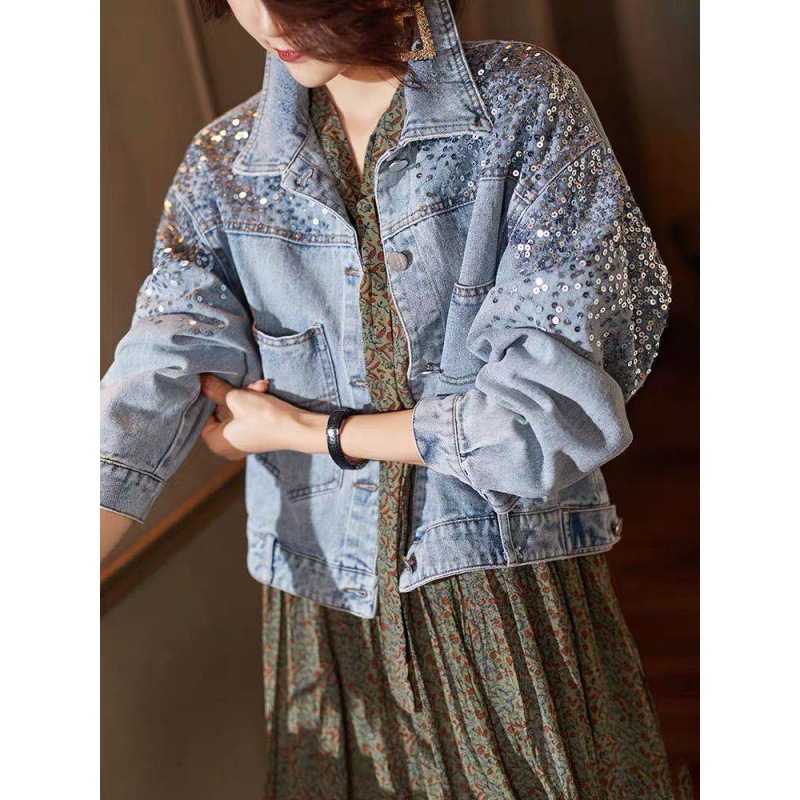 아마존 알리 익스프레스 패션 스퀸 데님 코트 여성의 새로운 유럽 역 짧은 봄 재킷 슬림 탑스토어 가기
