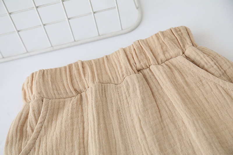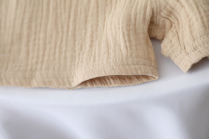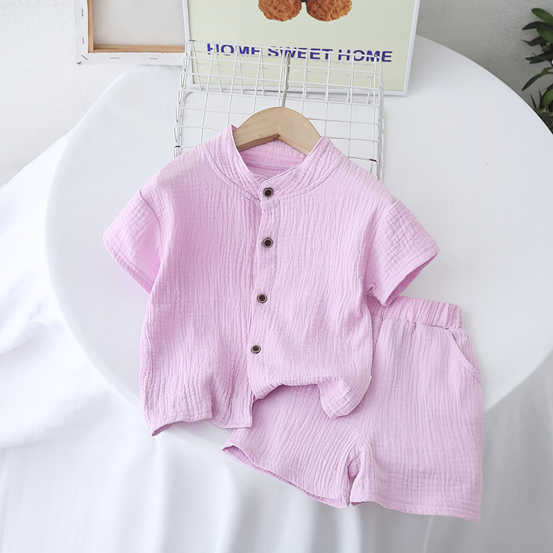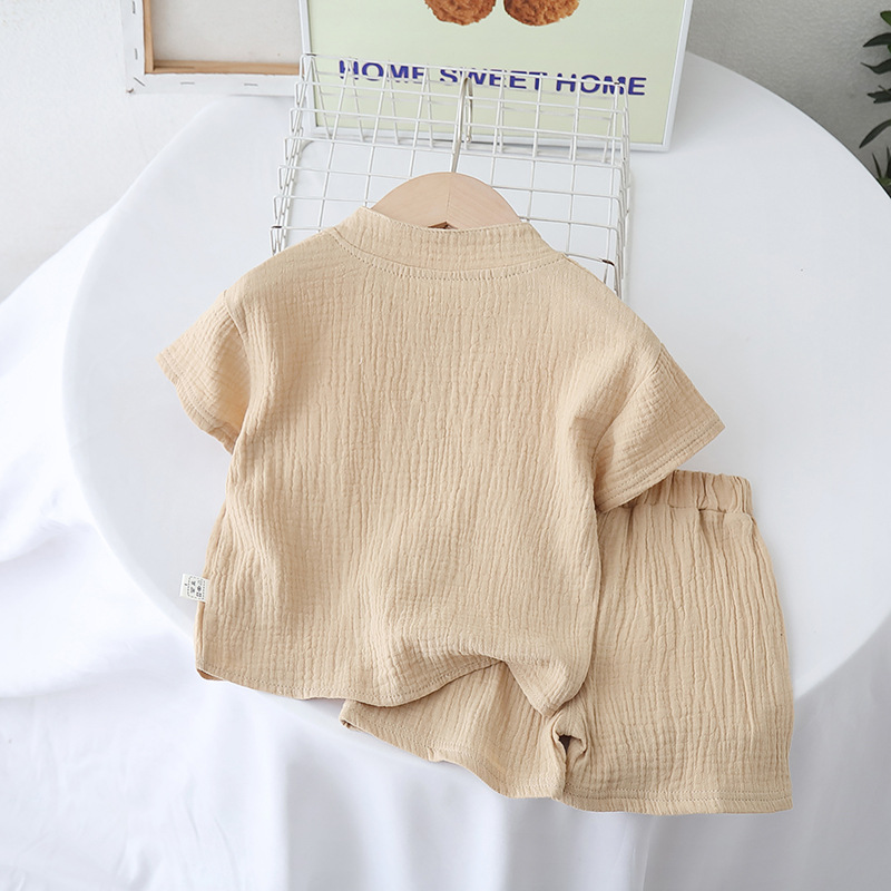 여름 아동복 2025 새로운 대외 무역 단색 소년 소녀 여름 짧은 소매 면사 아기 옷 분할 세트스토어 가기
