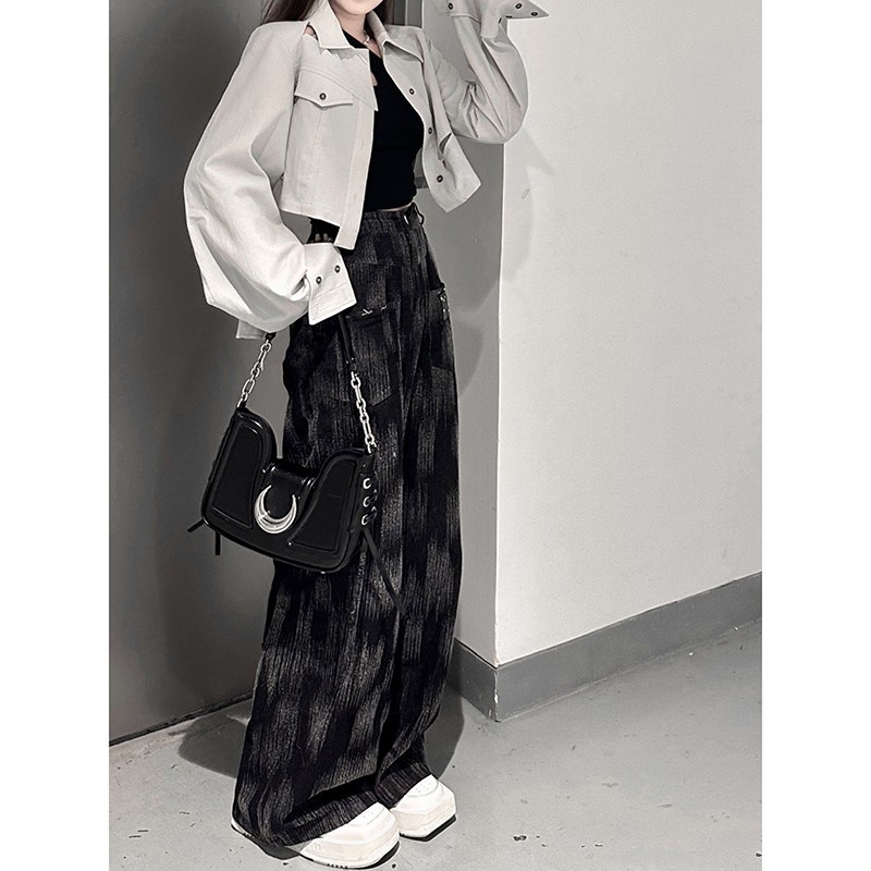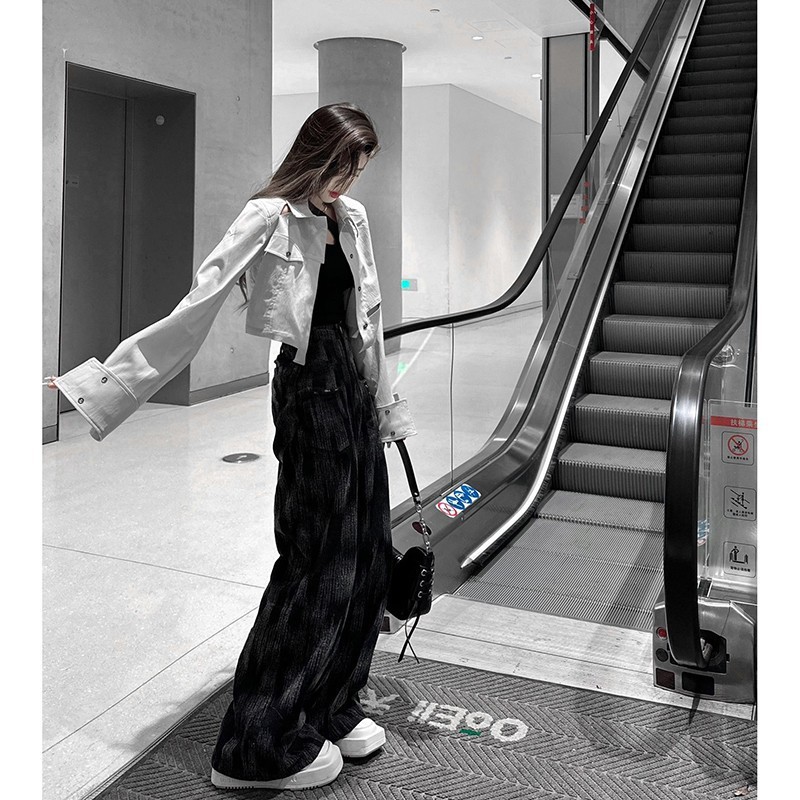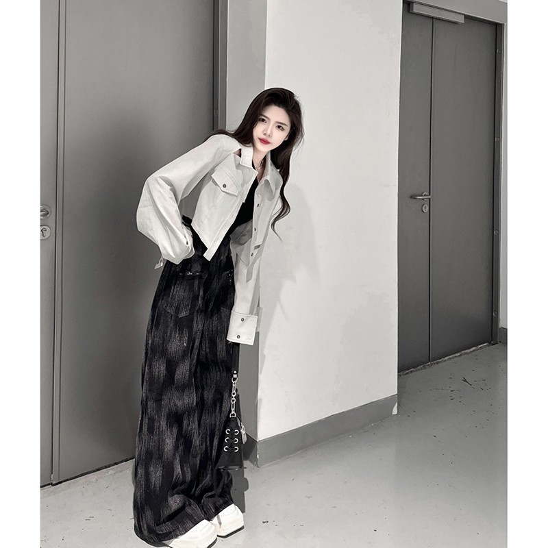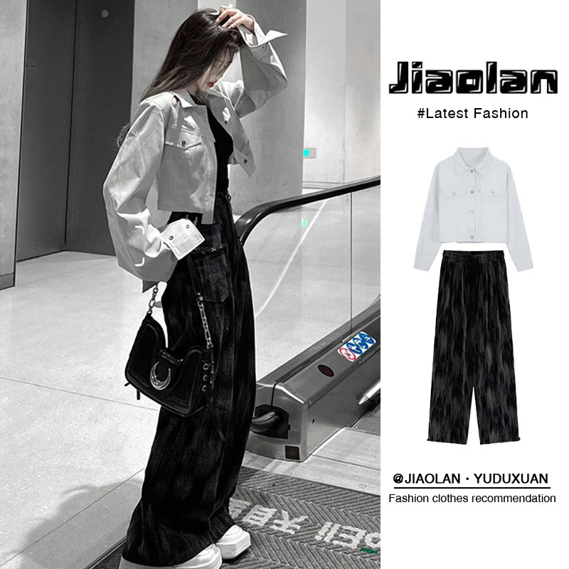 이른 가을, 2025 새로운 기질 하이 엔드 짧은 오픈 긴팔 셔츠 코트 느슨한 넓은 다리 바지 세트 착용스토어 가기