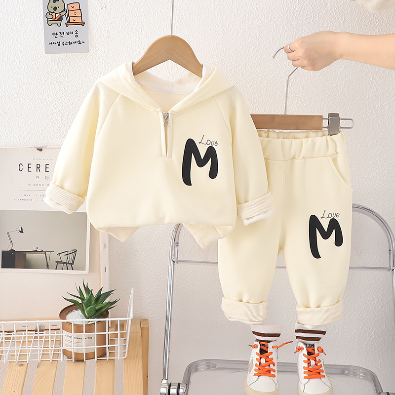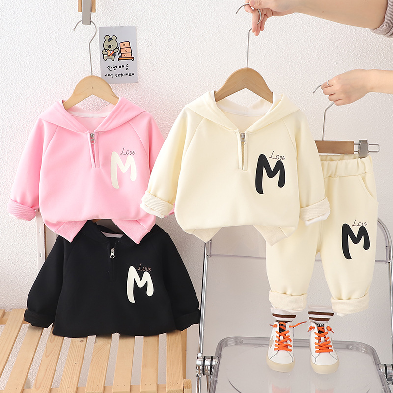 2025 새로운 서양식 어린이 유행 아기의 봄과 가을 편지 후드 긴팔 투피스 세트 소녀의 봄 패션 세트스토어 가기