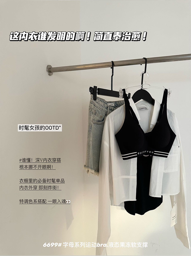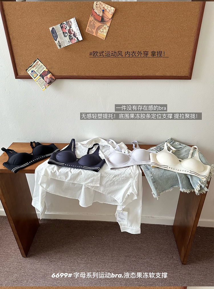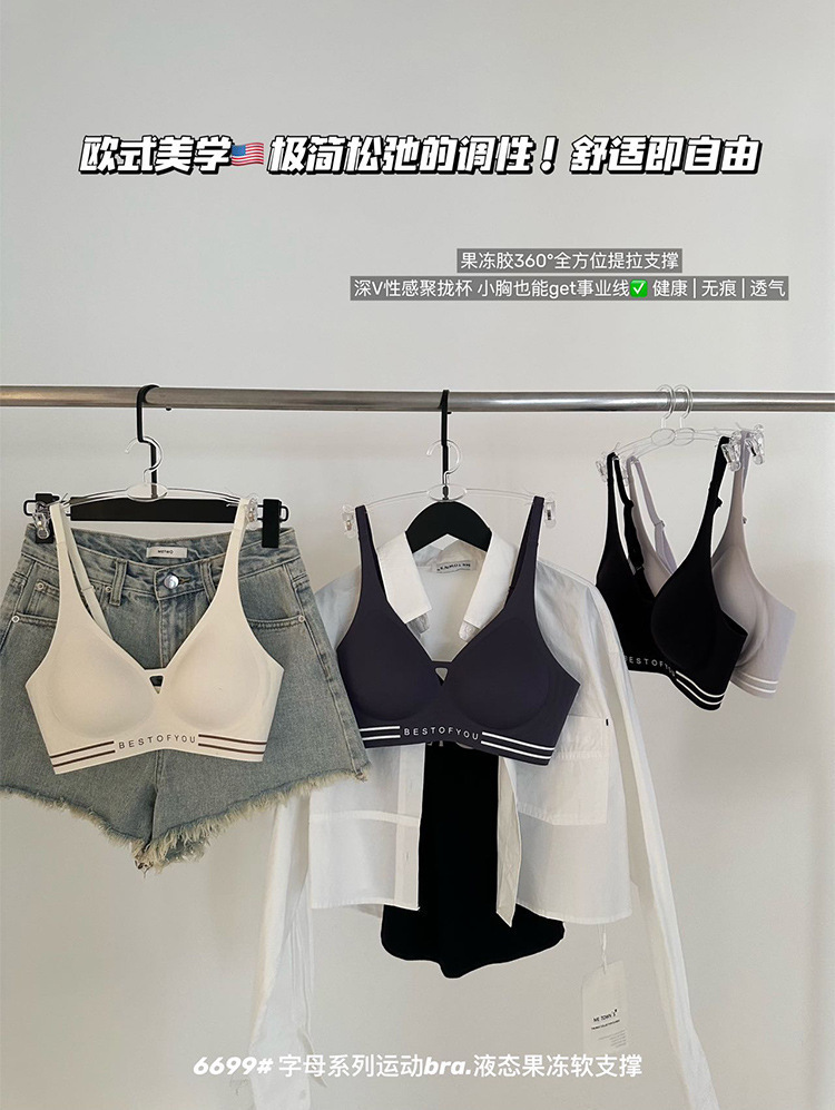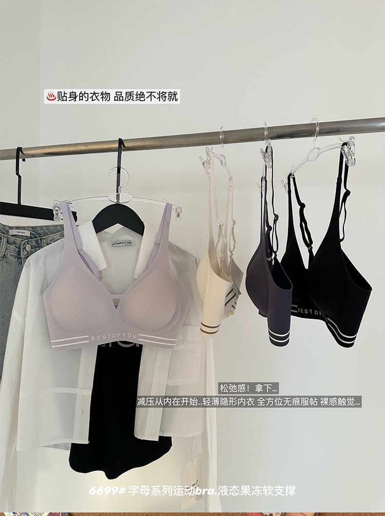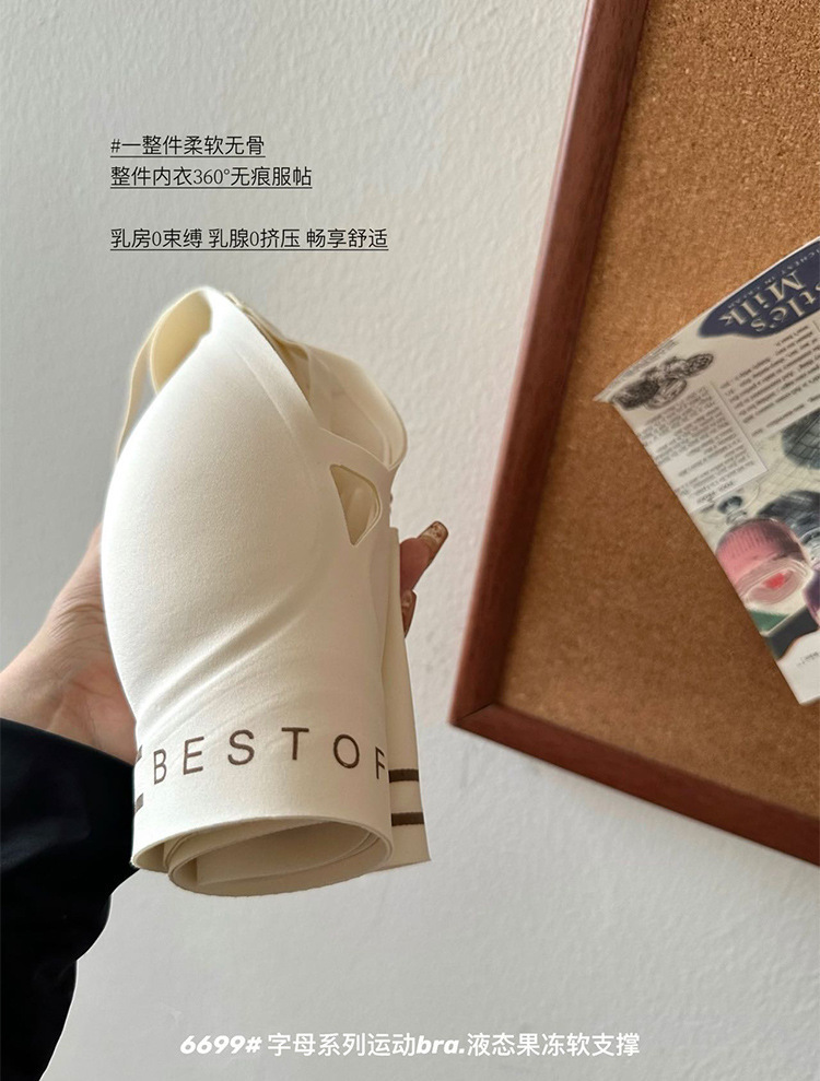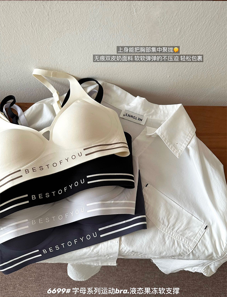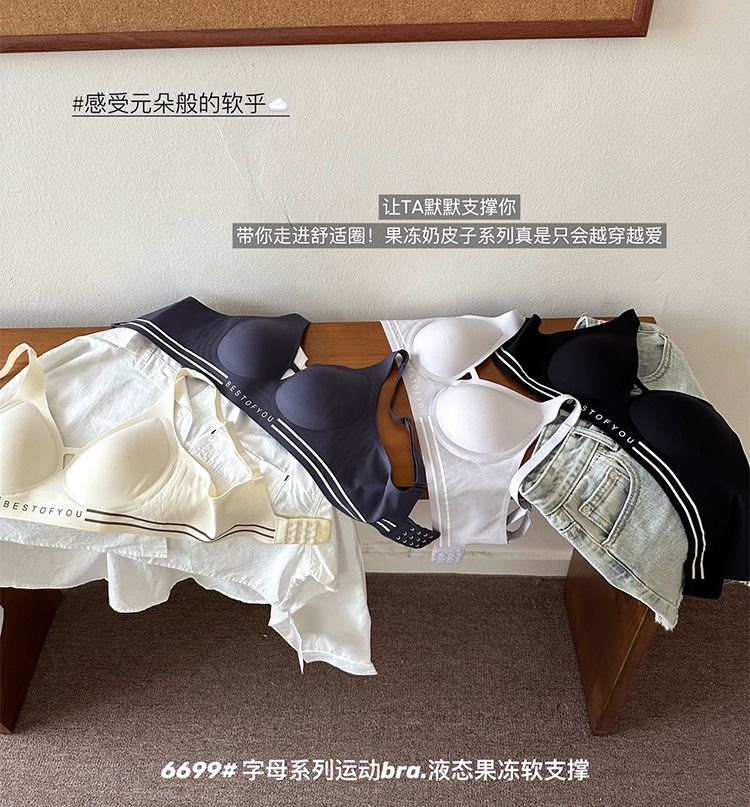 果冻软支撑6699字母运动bra液态聚拢内衣女无痕防下垂收副乳文胸