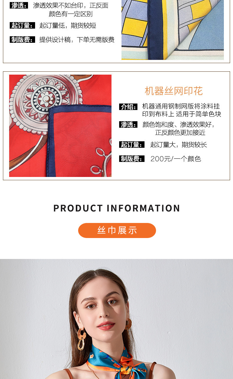 실크 스카프 맞춤형 로고 양면 인쇄 스퀘어 스카프 여성 실크 선물 긴 헤어 밴드 리본스토어 가기