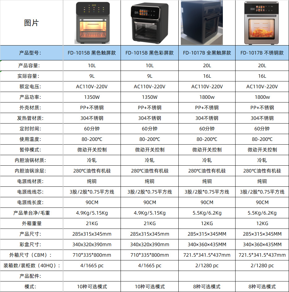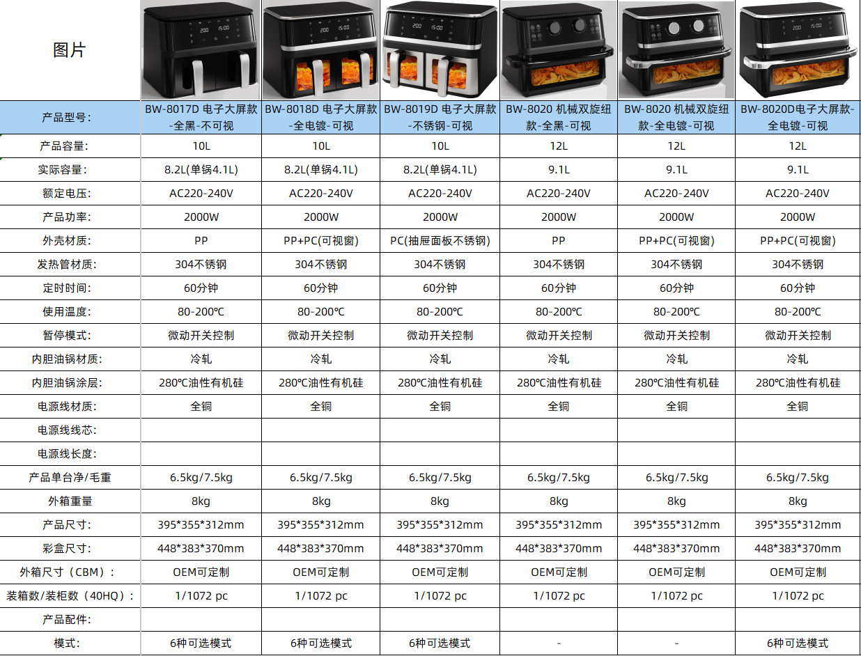 • "양쯔 국내용 4.5L 터치스크린 시각형 모델 + ""1200W 고출력""."