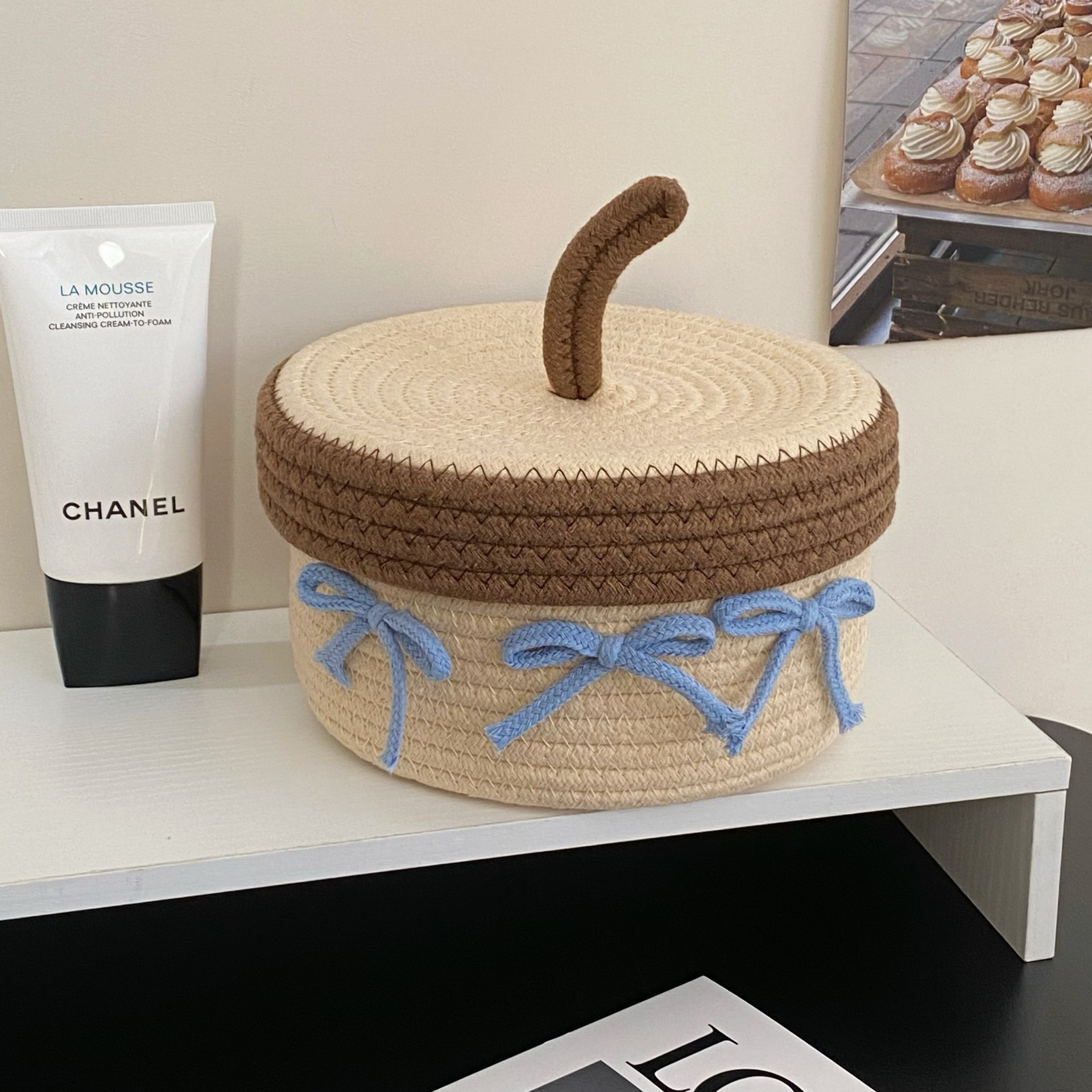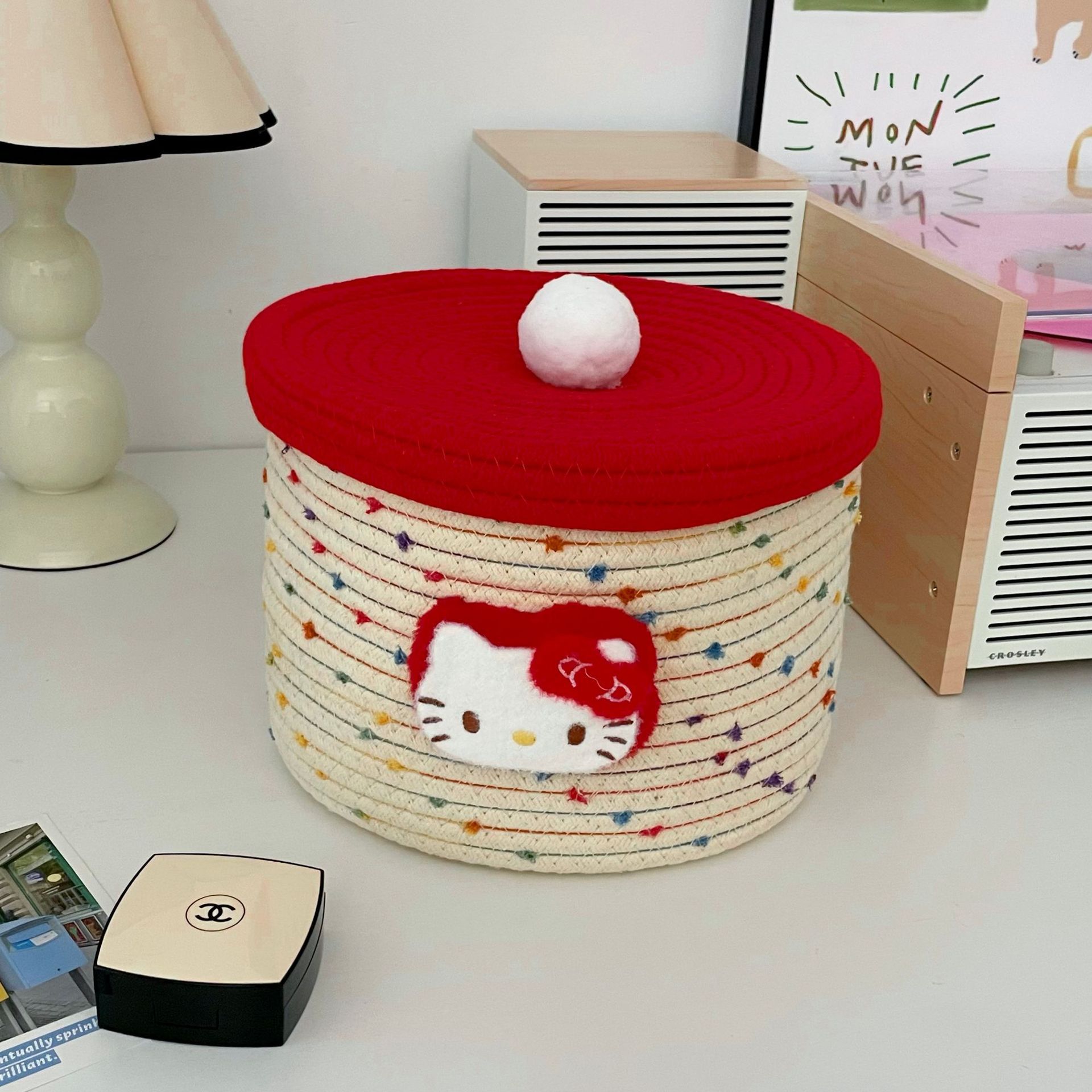 귀여운 면실 저장 바구니 잡화 용 뚜껑이있는 홈 저장 바구니 방수 데스크탑 먼지 방지 장식품 보관 바구니 바구니