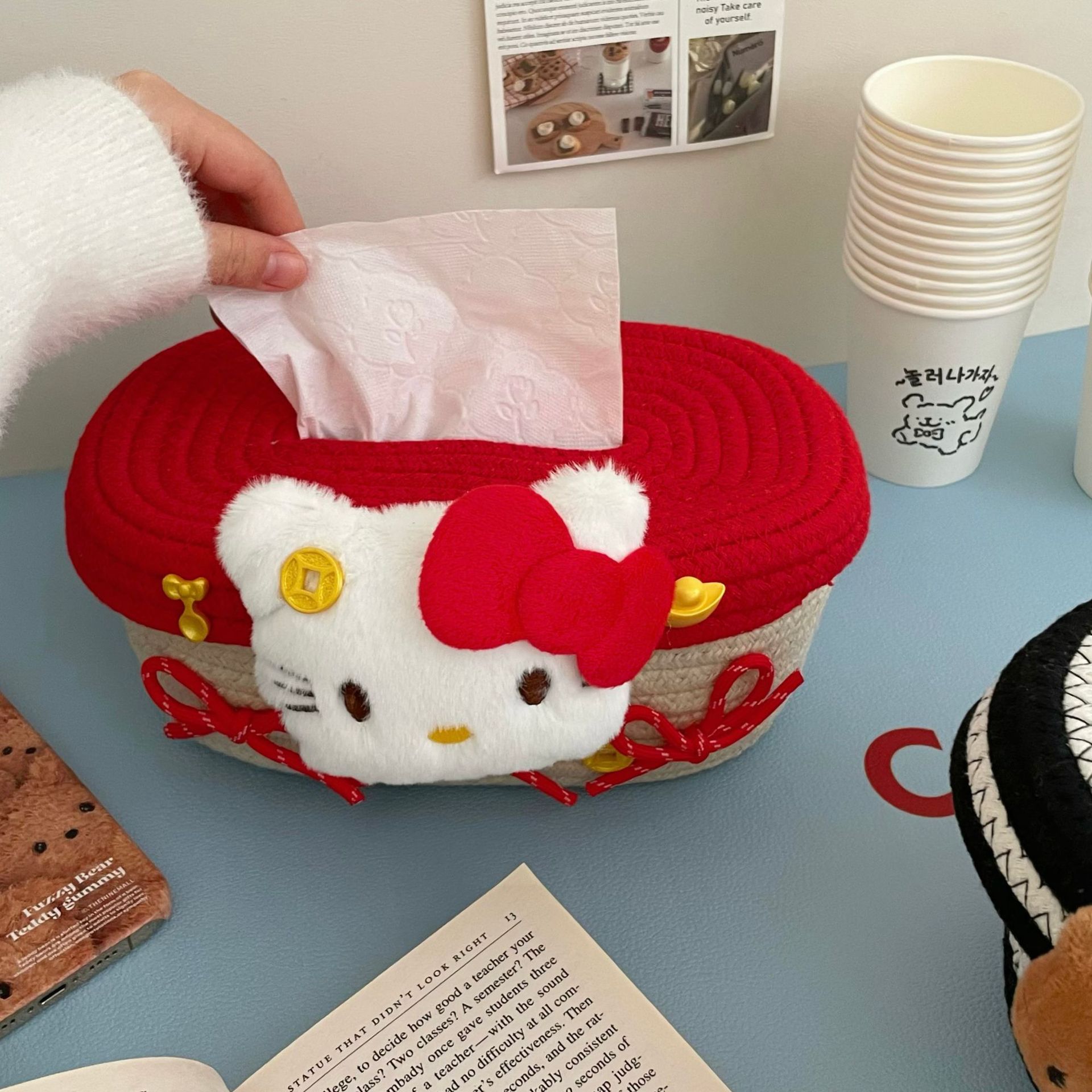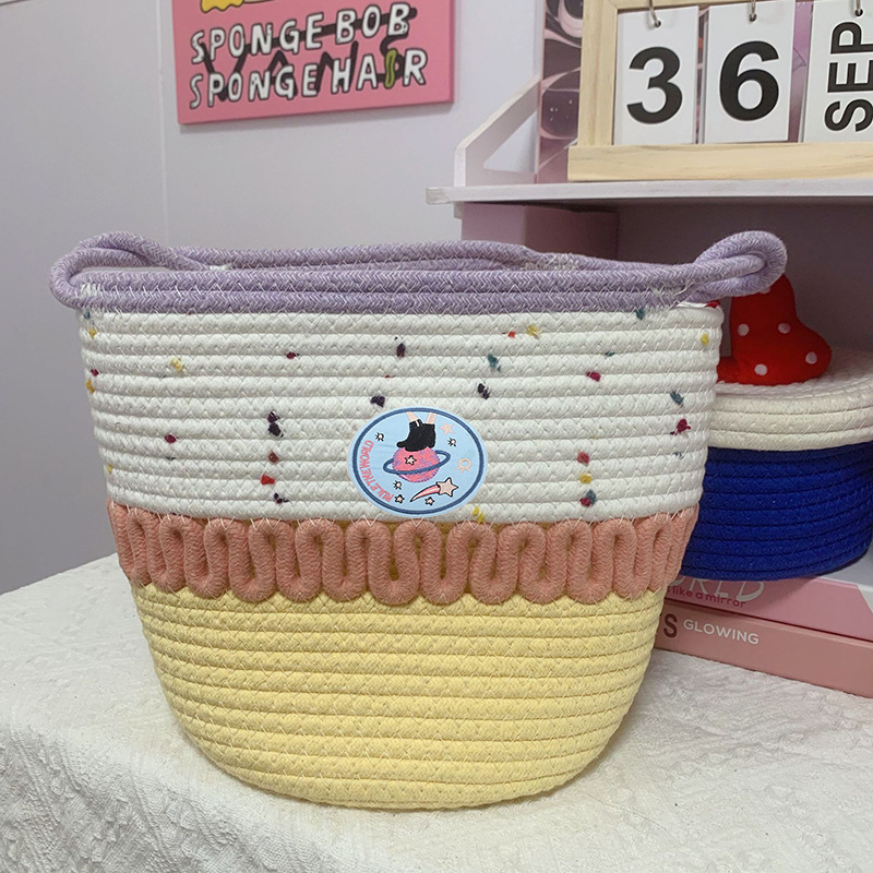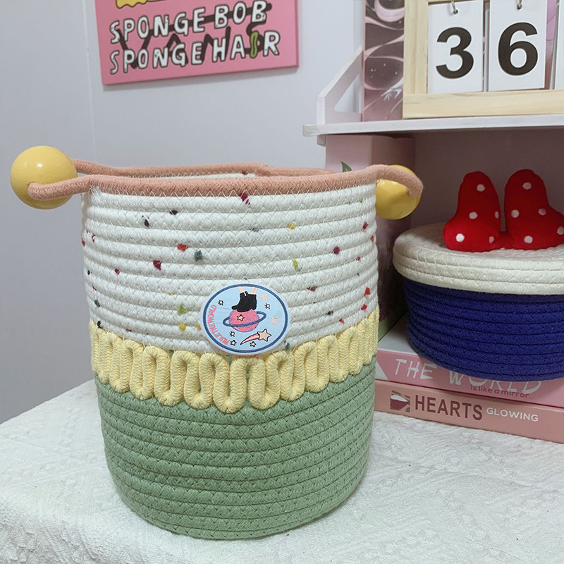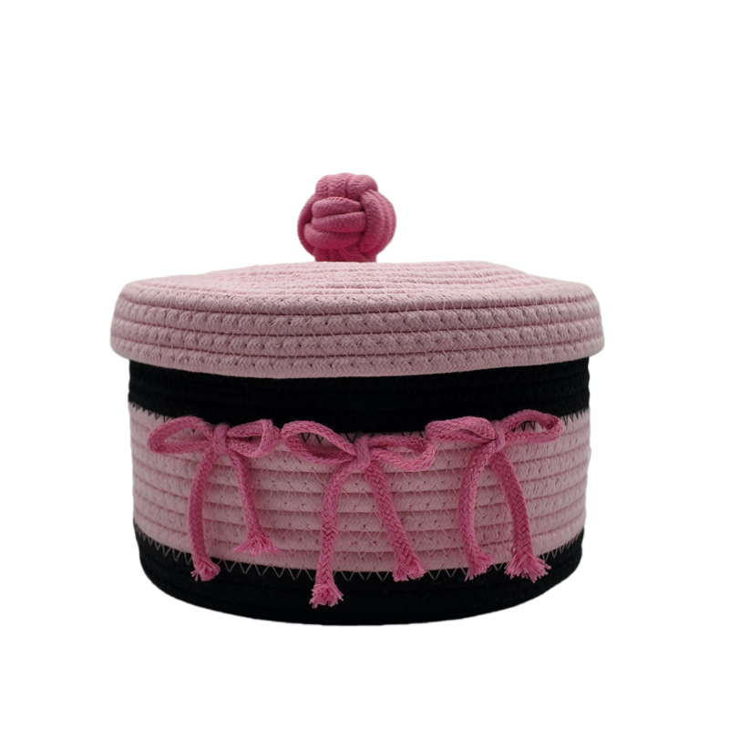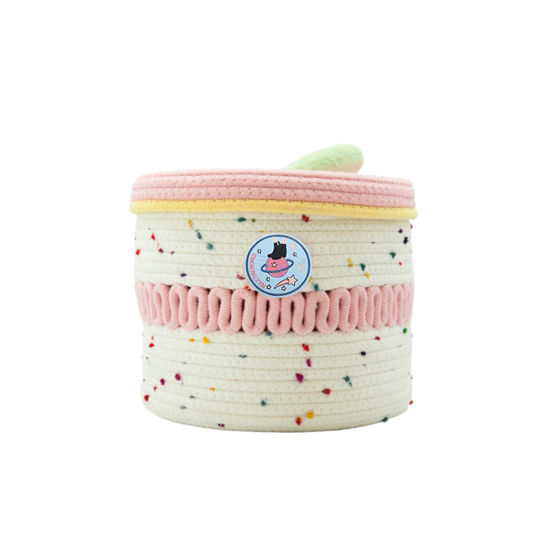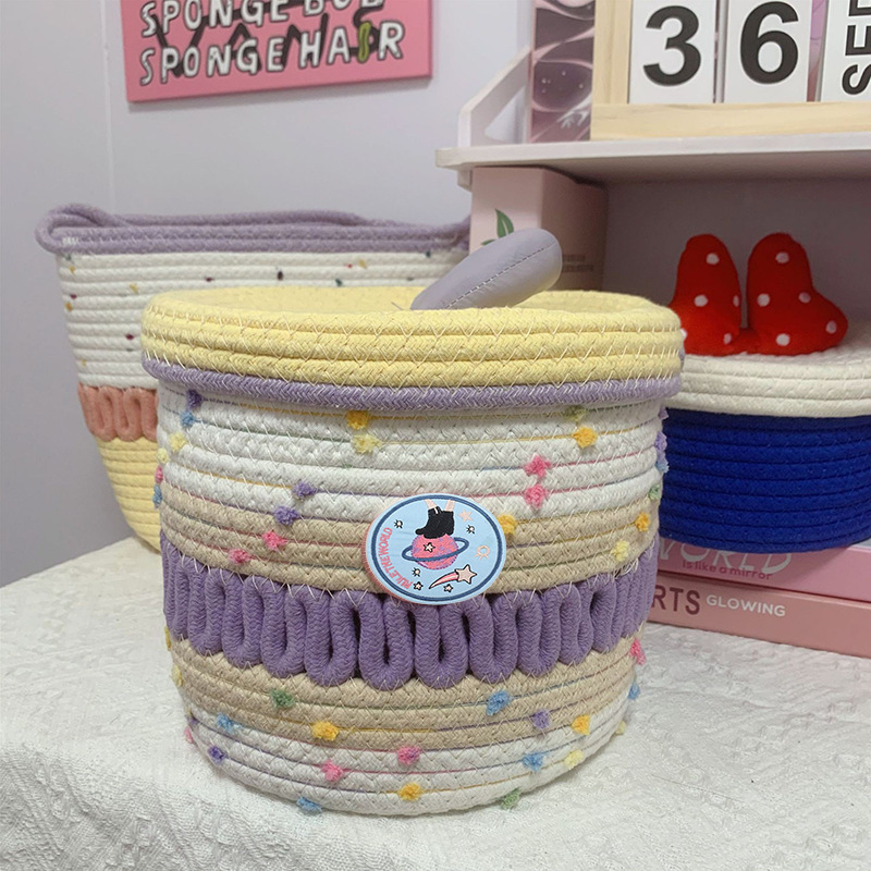 귀여운 면실 저장 바구니 잡화 용 뚜껑이있는 홈 저장 바구니 방수 데스크탑 먼지 방지 장식품 보관 바구니 바구니스토어 가기