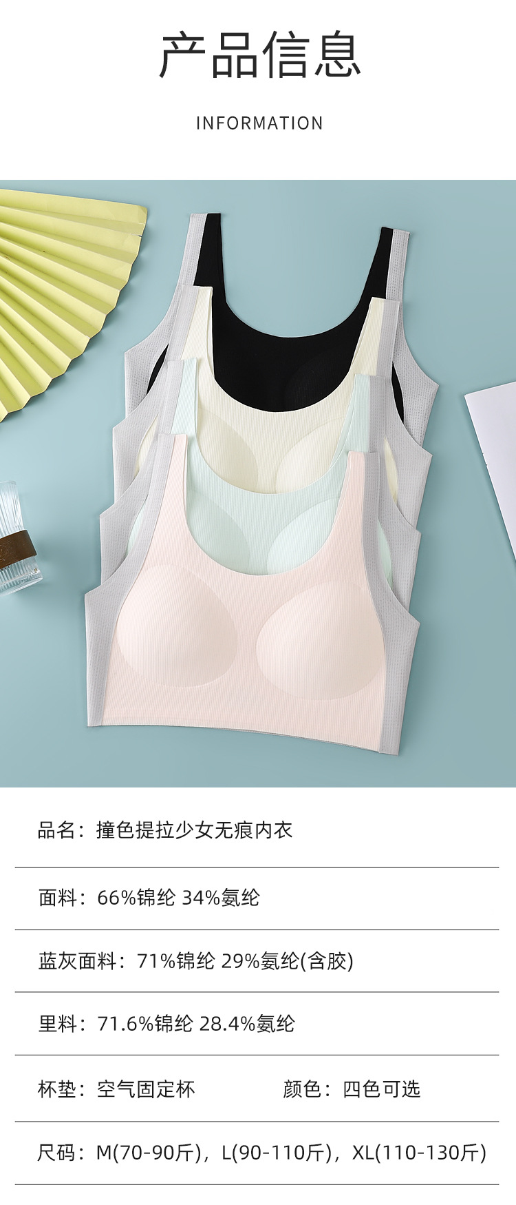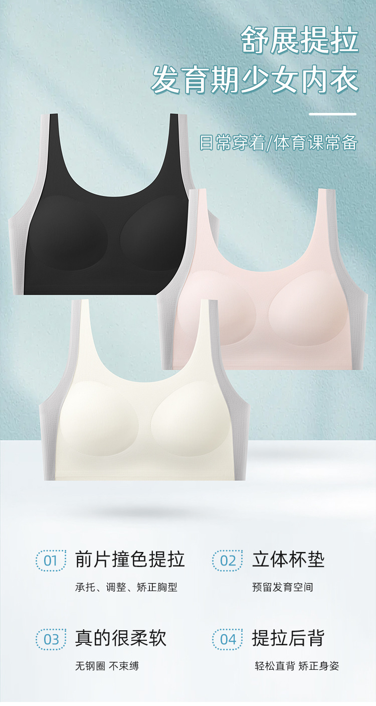 여자 콘트라스트 속옷 중학생 고교생 여중생 초중학생 발달조끼 여성 트레이드리스 고정컵브라