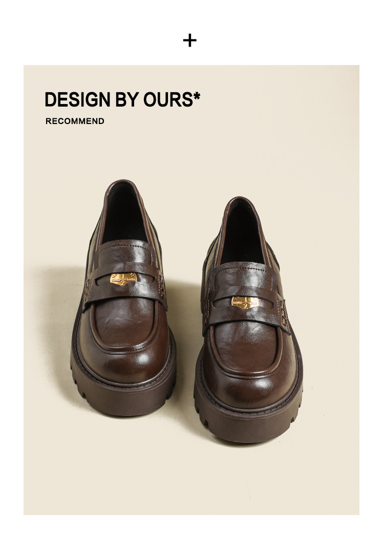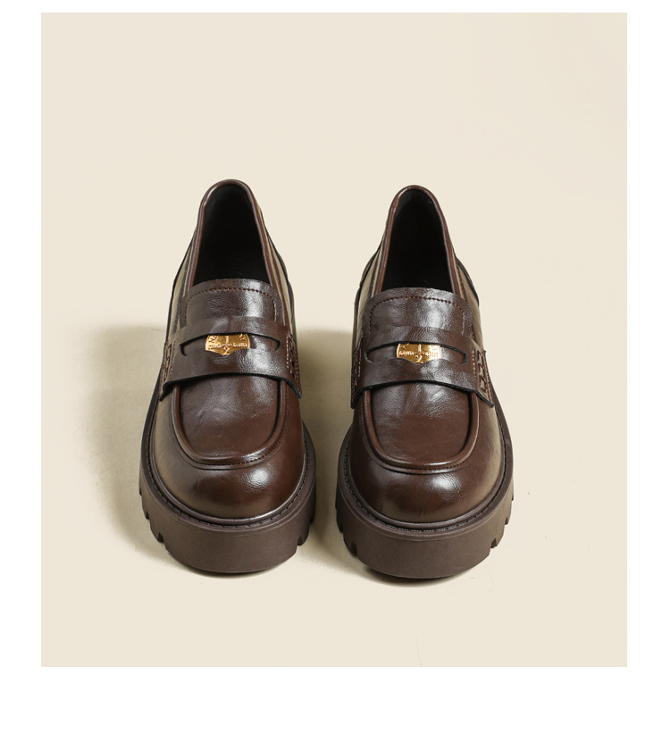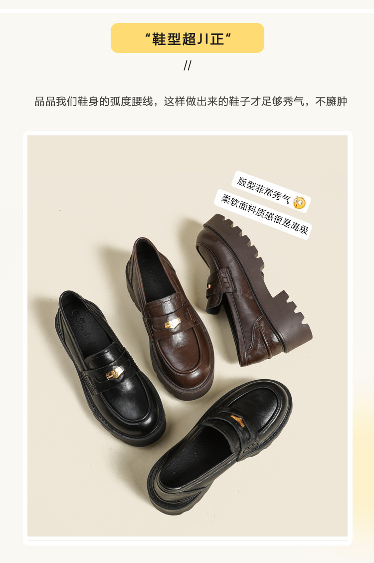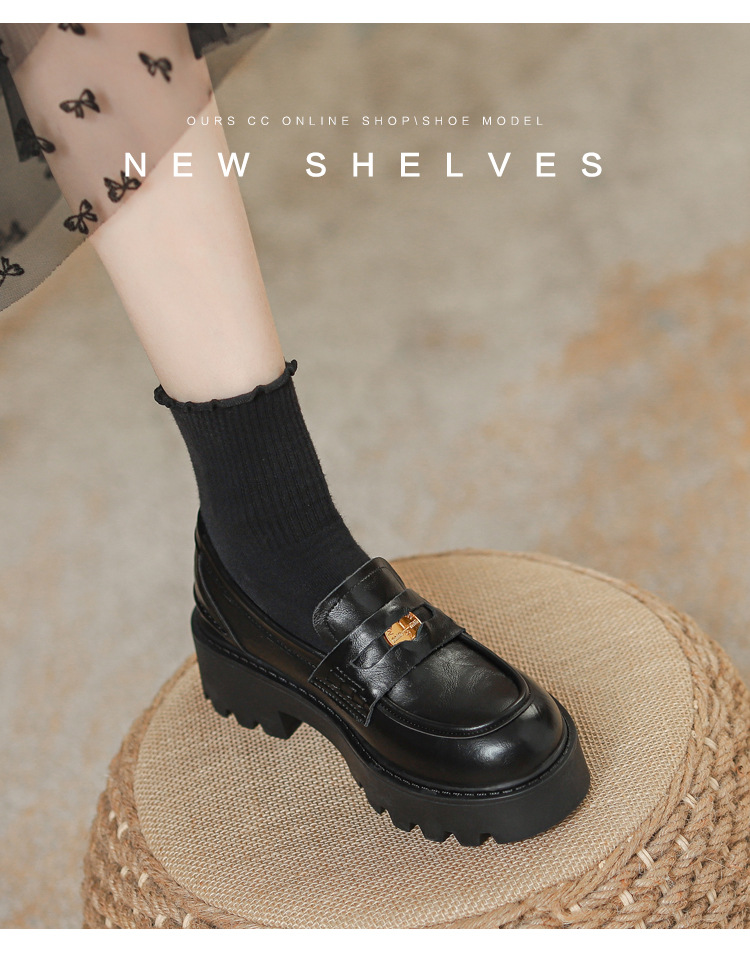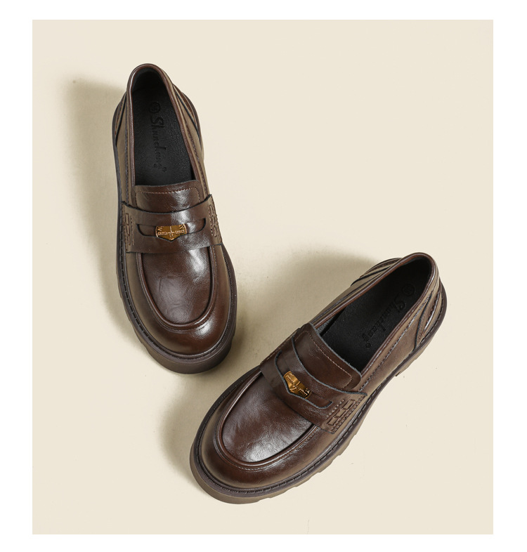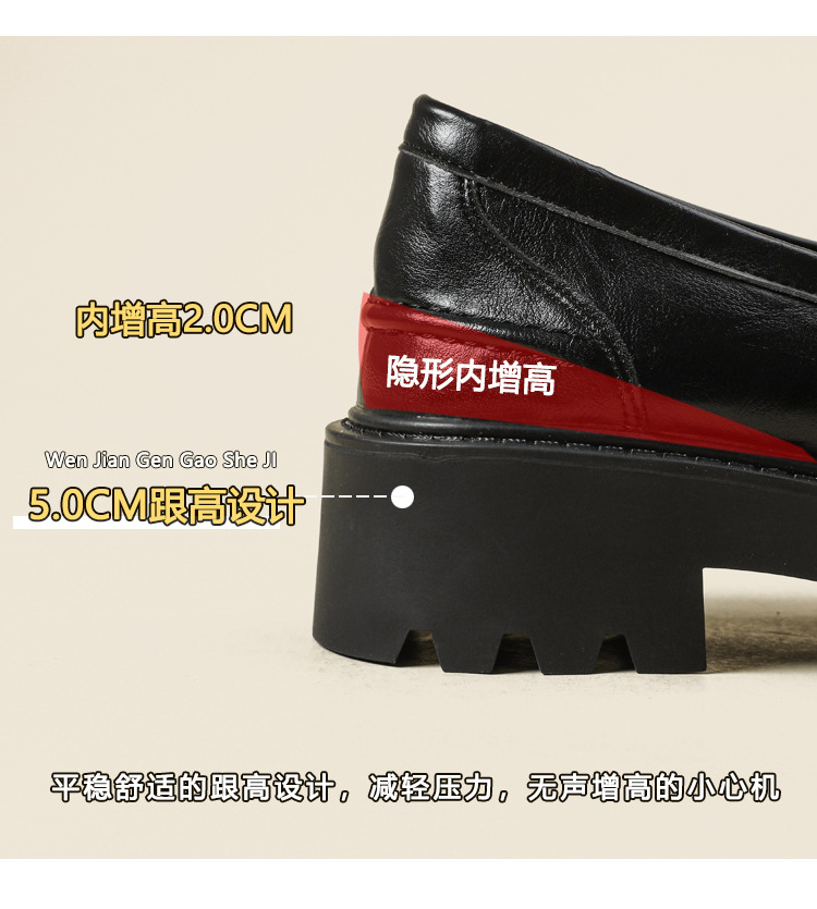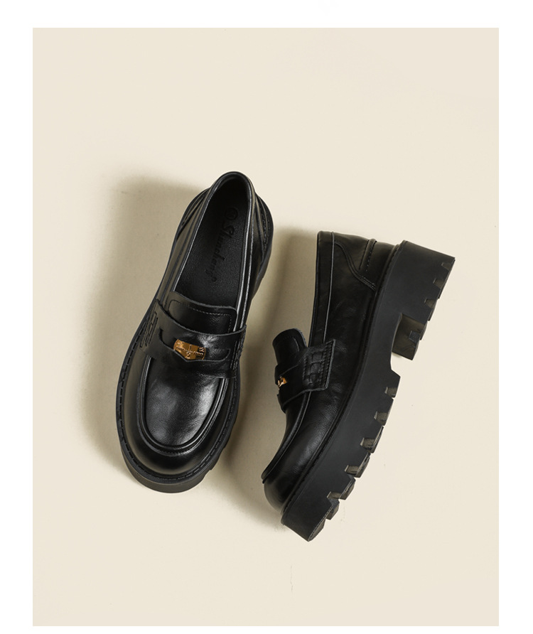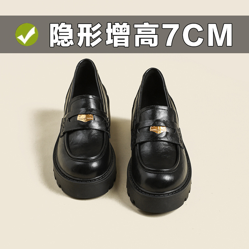 재고 도매 비싼 작은 금화 둥근 발가락 가죽 신발 여성의 두꺼운 밑창 신발 페달 블랙 증가 로퍼 여성스토어 가기