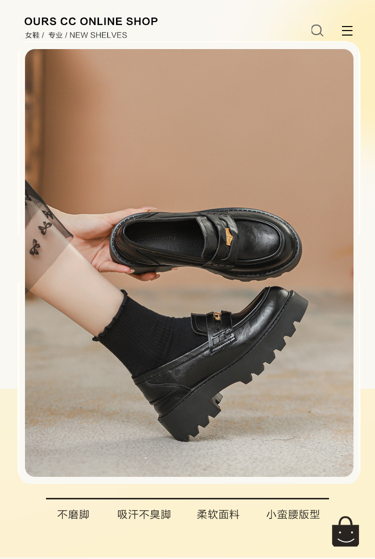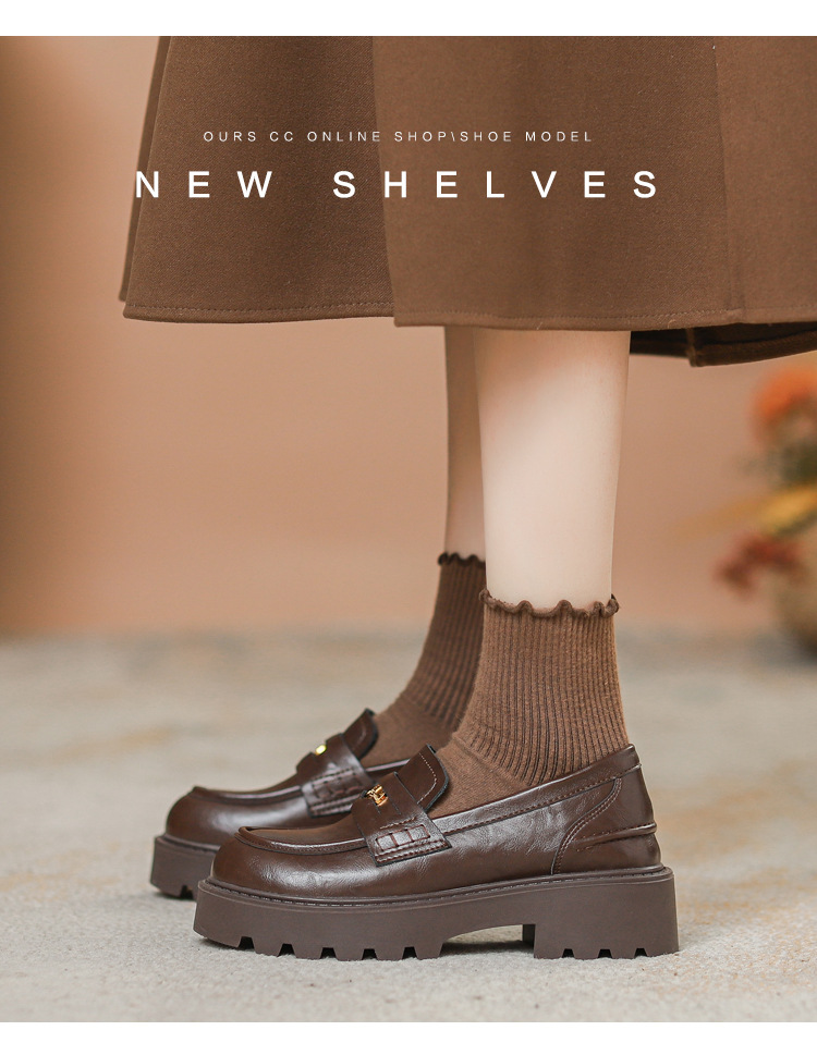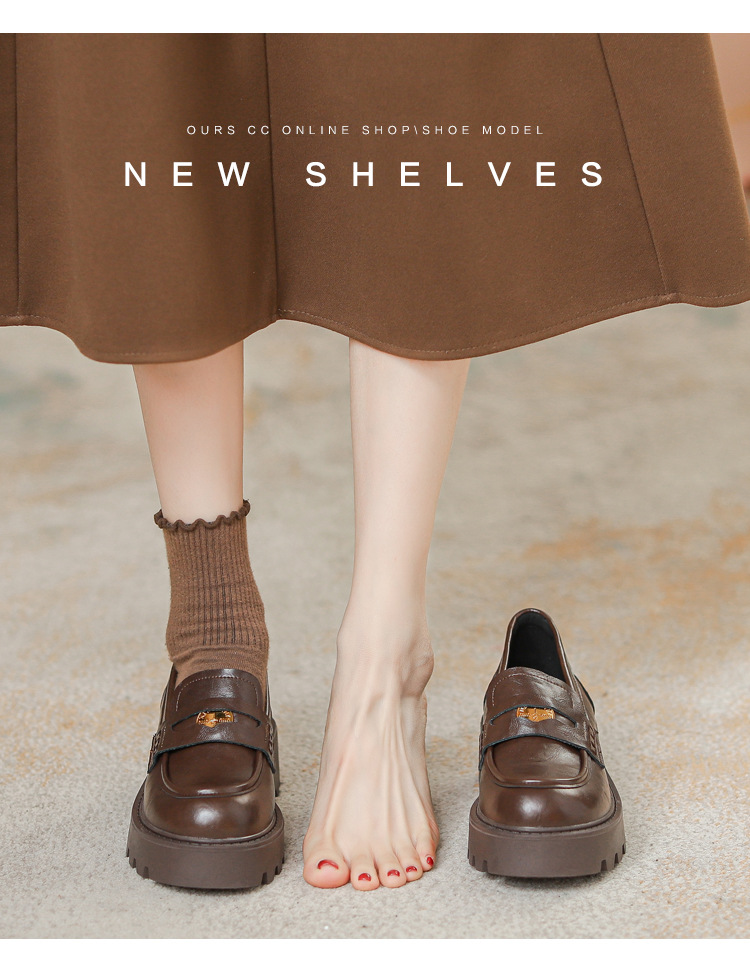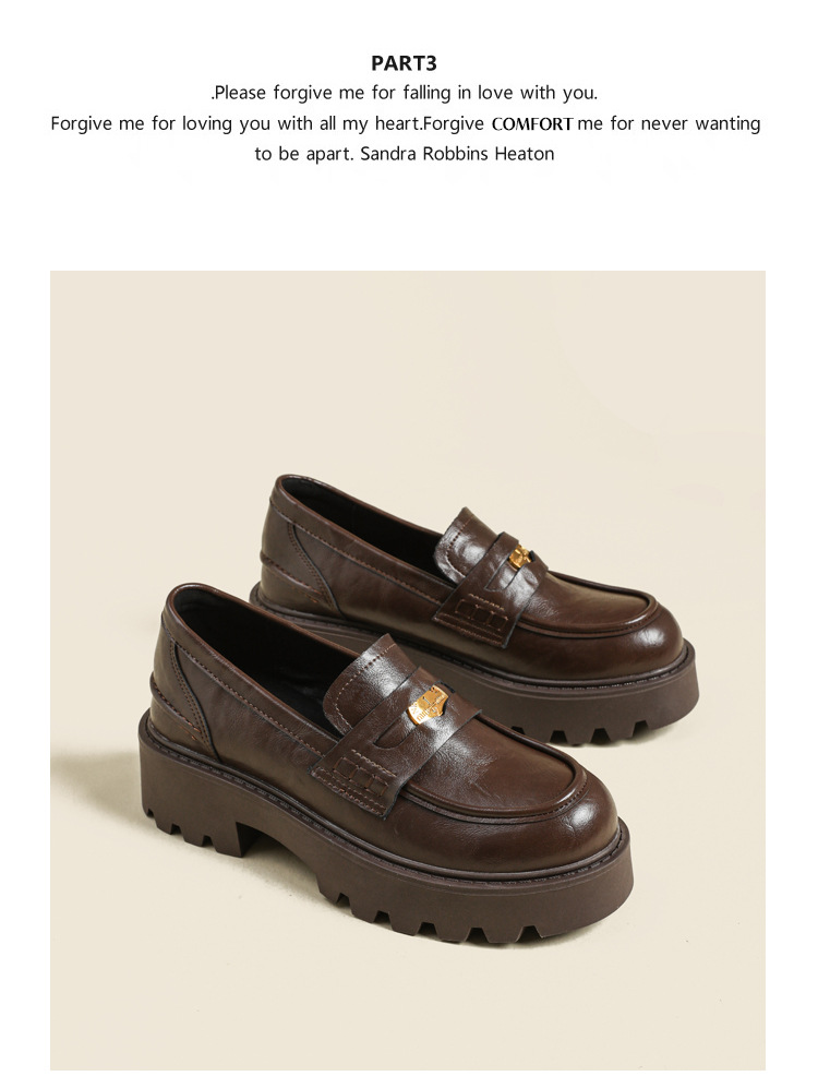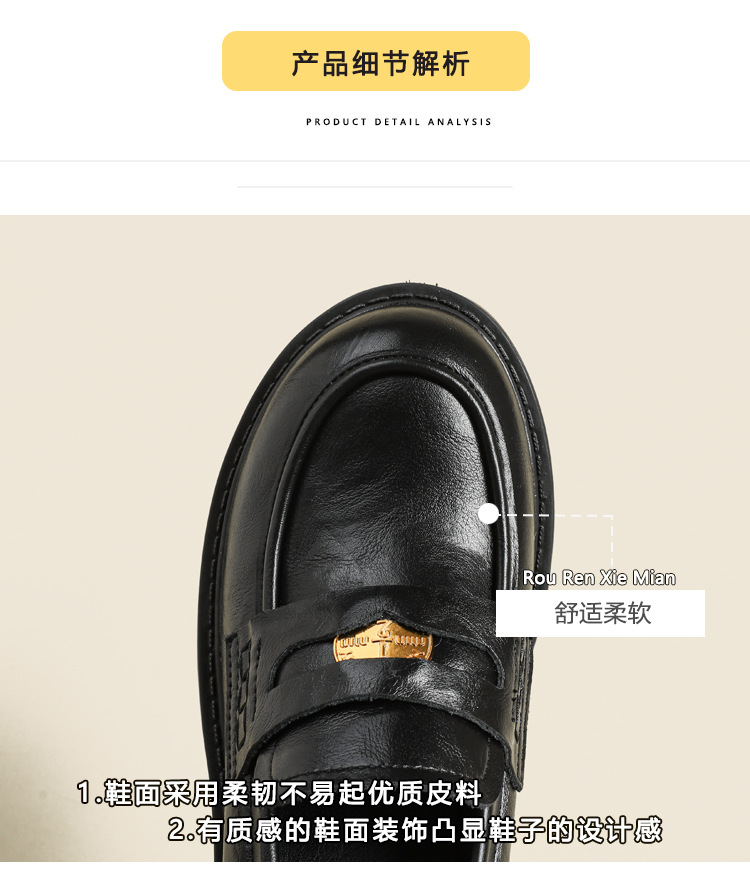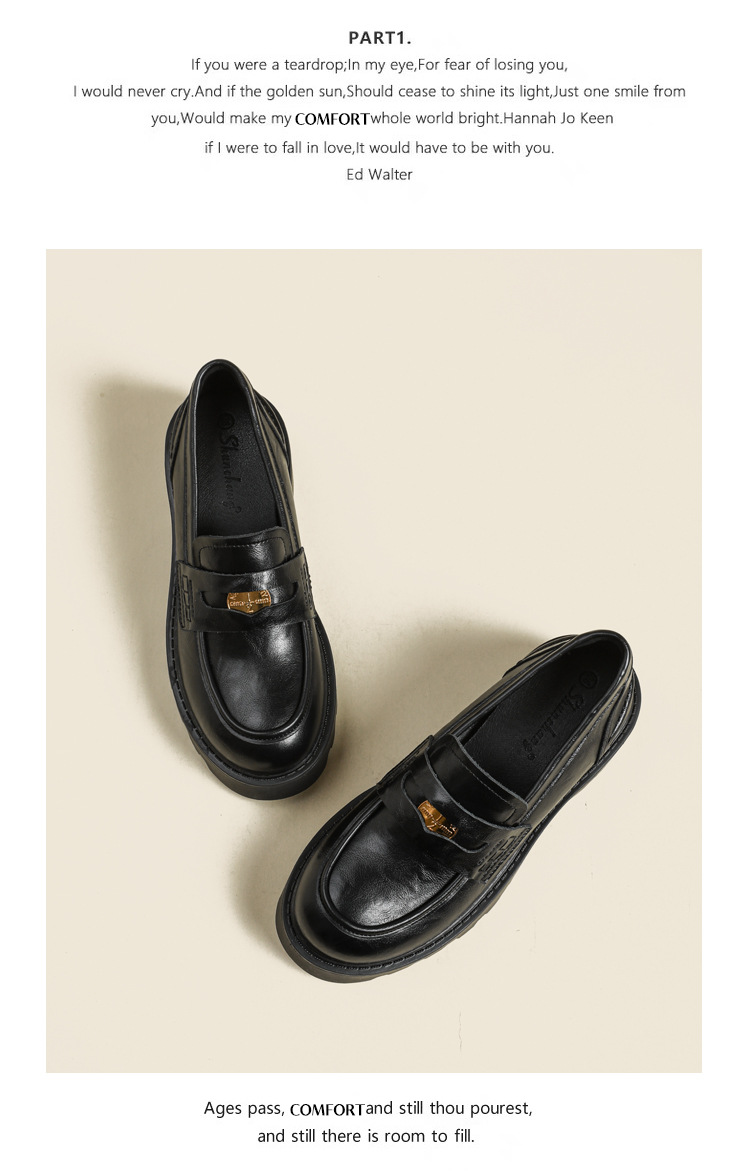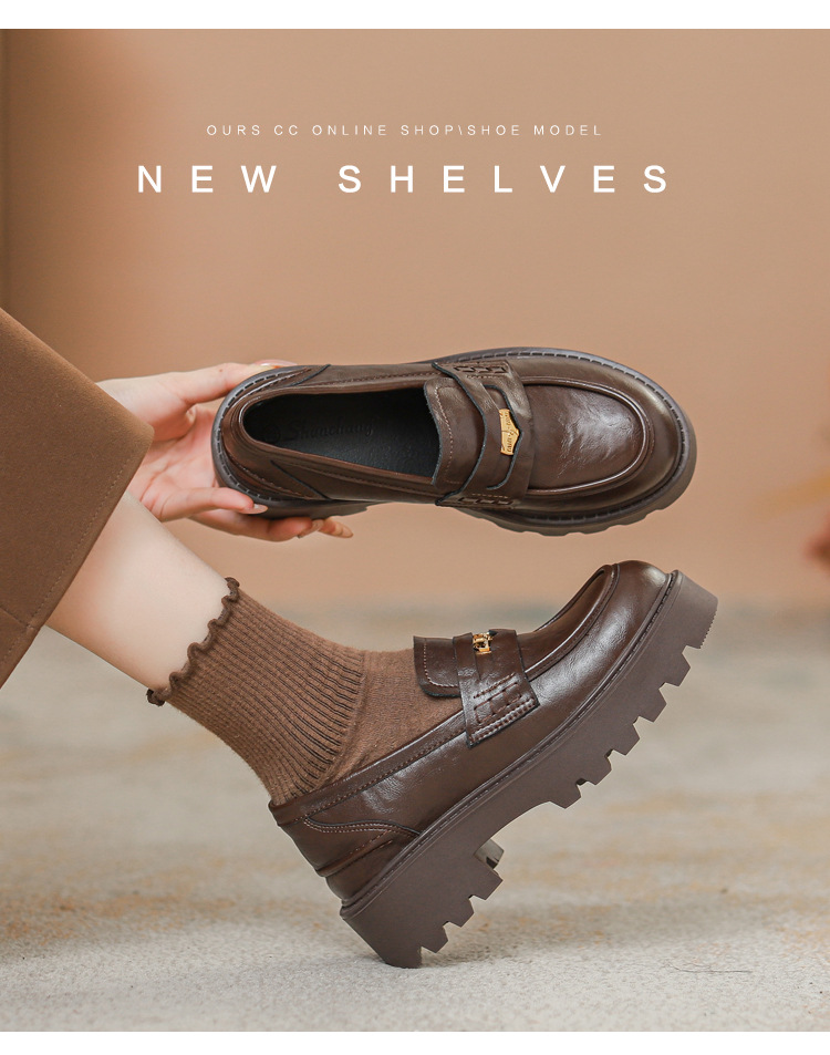 재고 도매 비싼 작은 금화 둥근 발가락 가죽 신발 여성의 두꺼운 밑창 신발 페달 블랙 증가 로퍼 여성스토어 가기