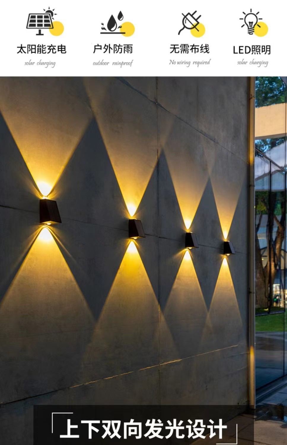 • 태양 에너지/상하 조명/다채로운 색상 변경, 단색으로 사용자 정의 가능