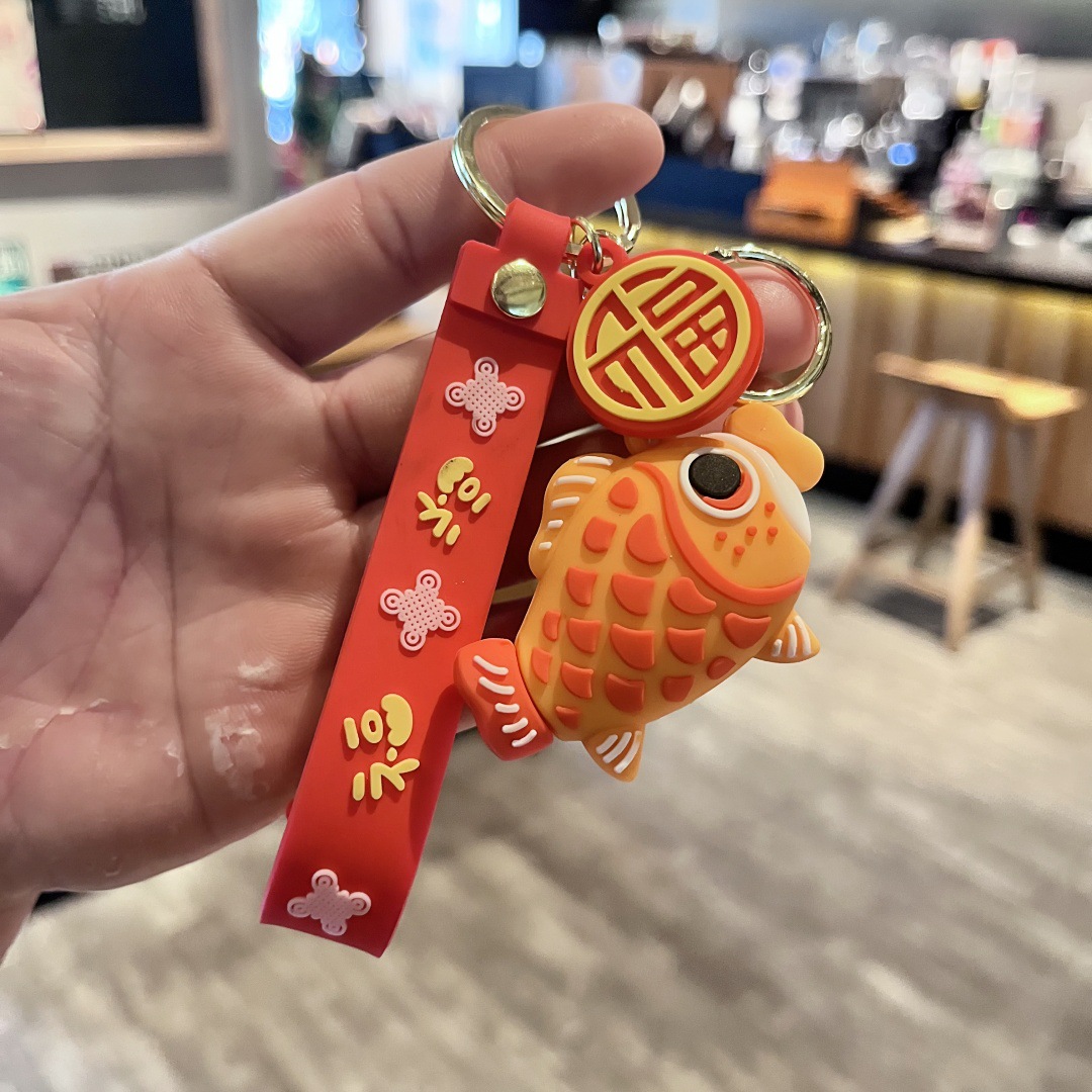 새로운 잉어 물고기 행운의 휴대용 열쇠 고리 책가방 펜던트 자동차 키 체인 인형 기계 잡아 선물