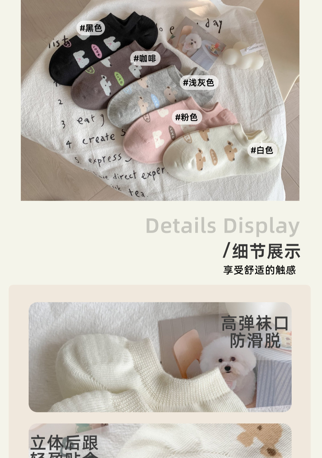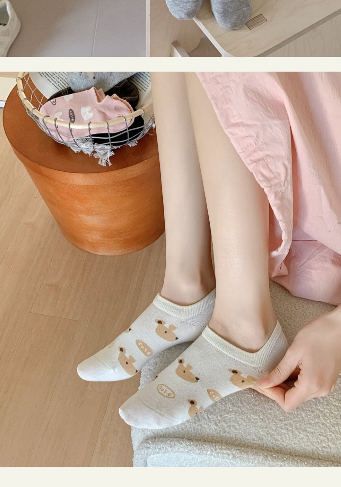 Mekki 여름 얇은 보트 양말 여성용 만화 귀여운 토끼 양말 다용도 소녀스러운 학생용 짧은 양말, 떨어지지 않음스토어 가기