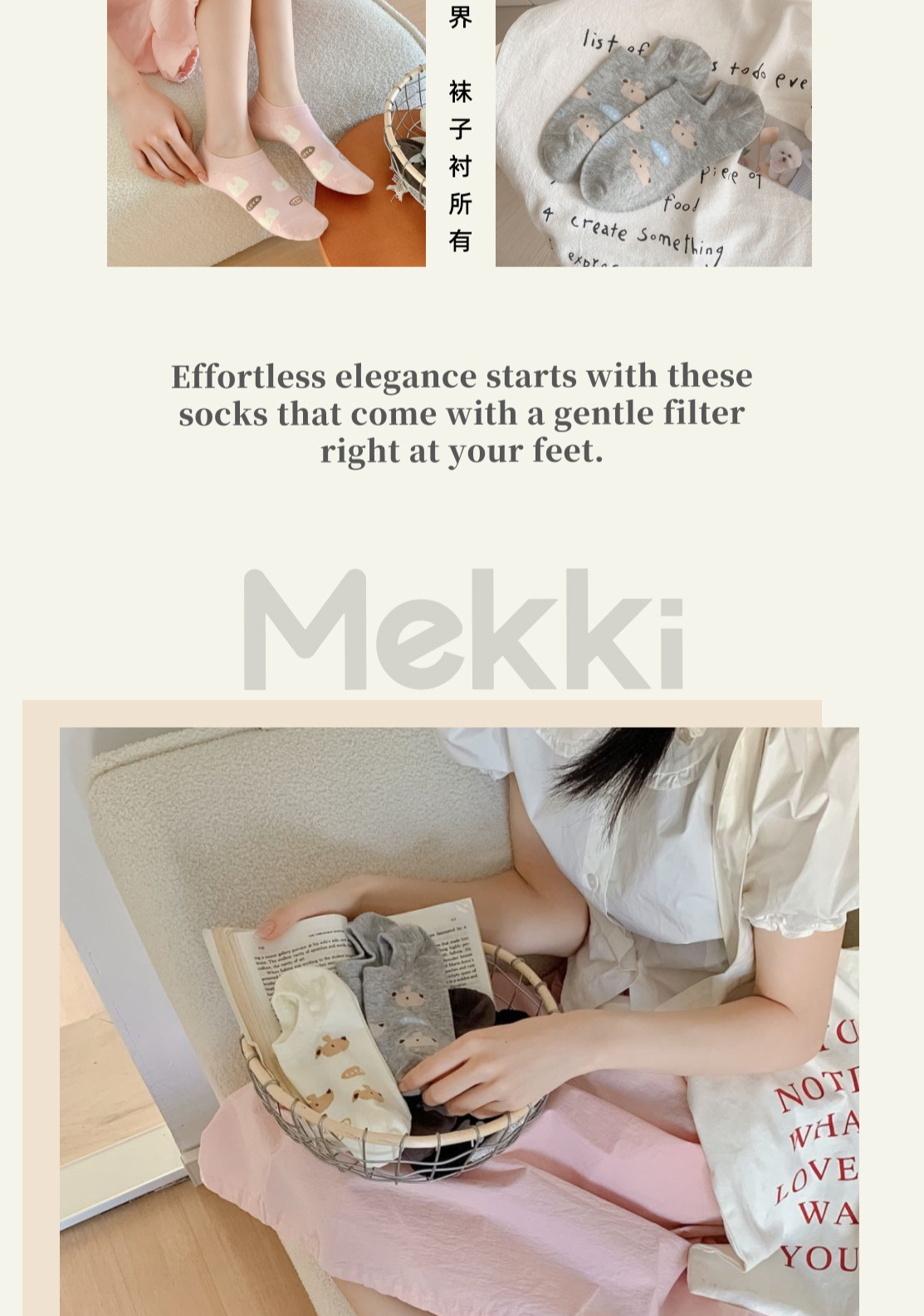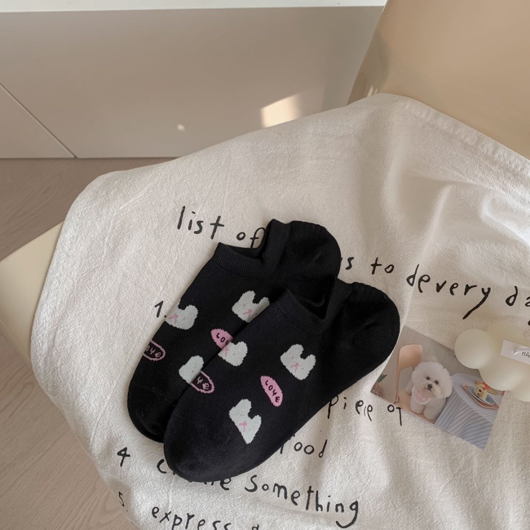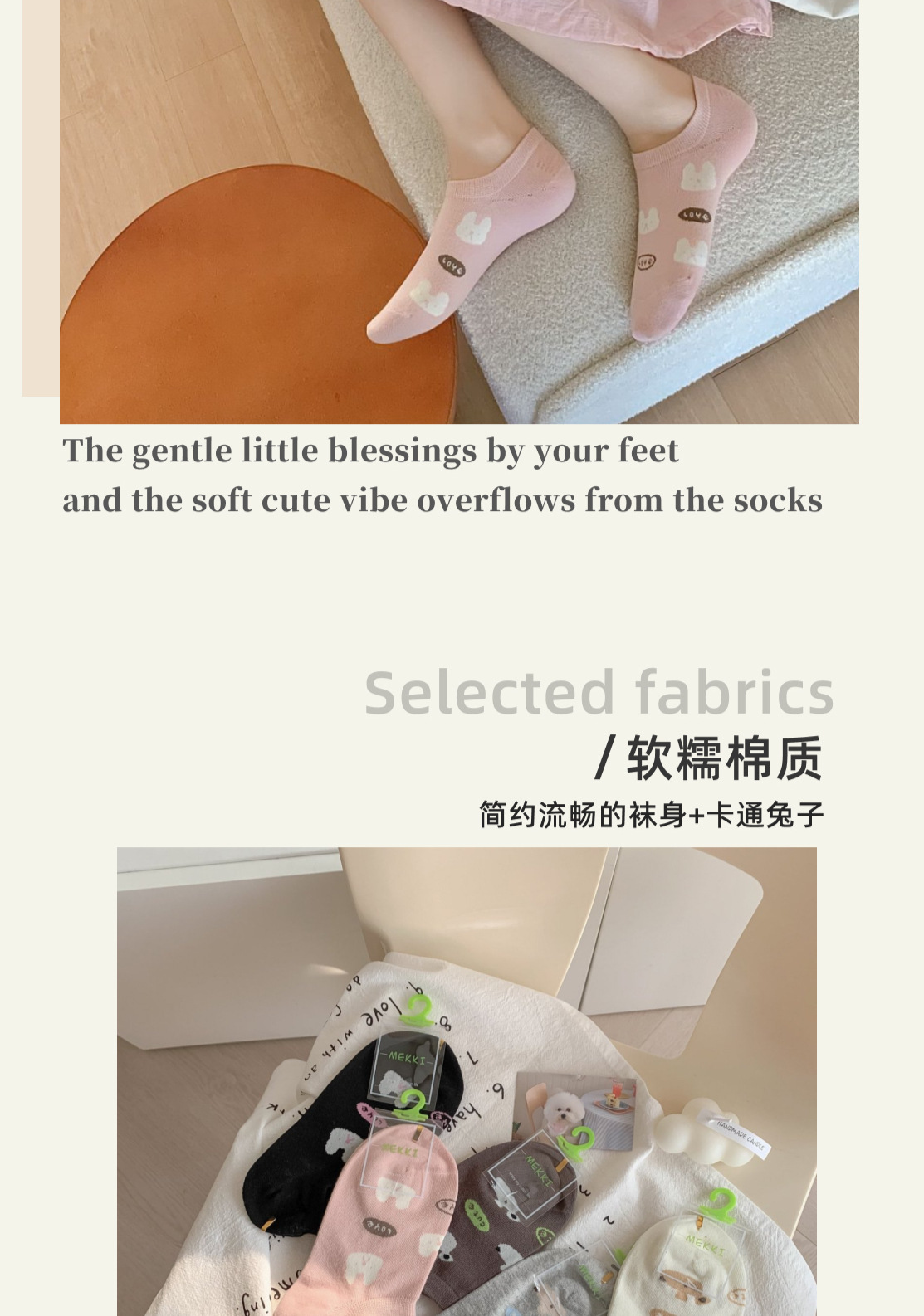 Mekki 여름 얇은 보트 양말 여성용 만화 귀여운 토끼 양말 다용도 소녀스러운 학생용 짧은 양말, 떨어지지 않음
